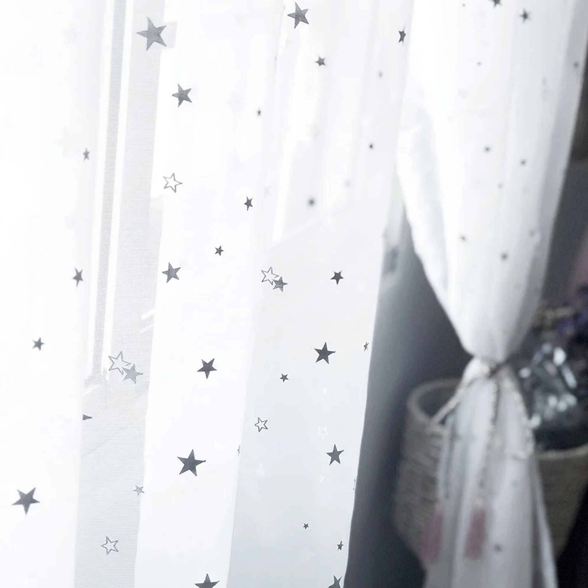 Купить Тюль со звездами цветная белая 100х270 см, вуаль белая для зала, спальни, кухни, длинная органза, занавески под лен