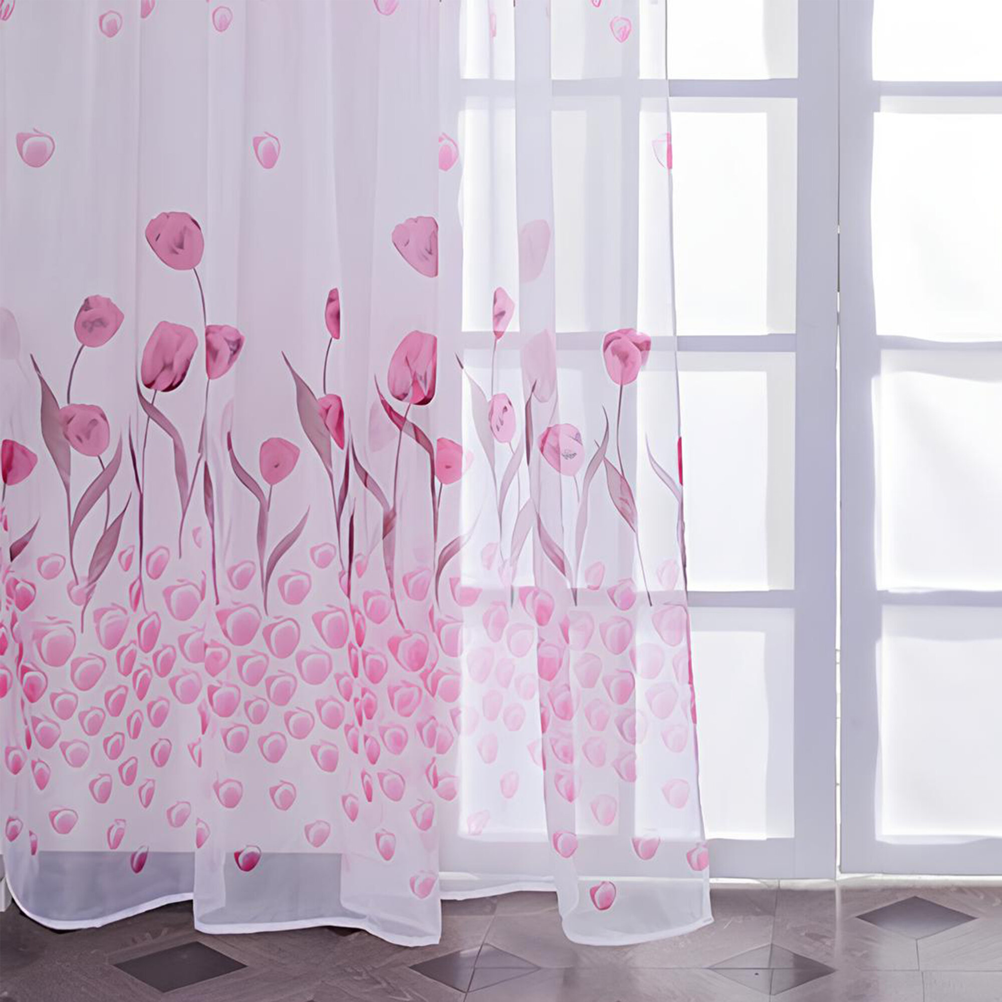 Купить Тюль цветная с рисунком Тюльпан розовая 100х270 см, вуаль белая для зала, спальни, кухни, длинная органза, занавески