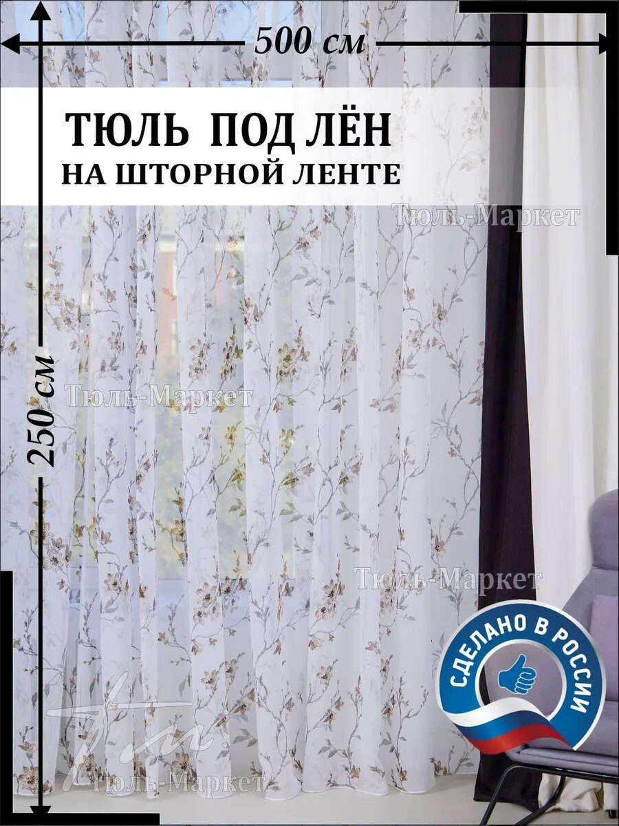 "Тюль-Маркет", тюль под лён с цветами для спальни и в гостиную, 5м х 2.5м интересное: