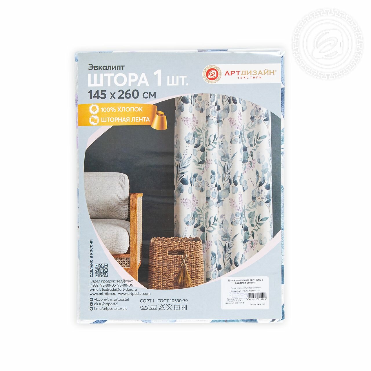 СохранитьШторы для гостиной с подхватом Эвкалипт Ш.145.260 АРТ дизайн, 145*260, голубой, синий, белый интересное: