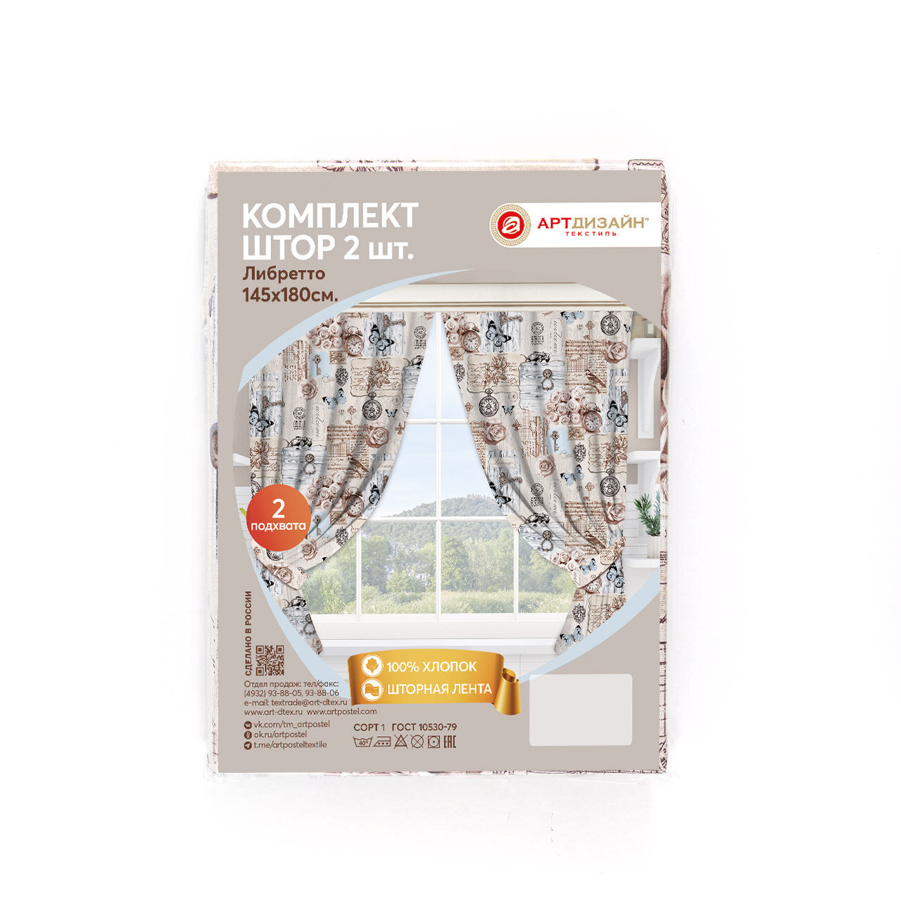СохранитьШторы для кухни с подхватом Либретто Ш.145.180 АРТ ДИЗАЙН, 145*180, коричневый, белый, бежевый интересное: