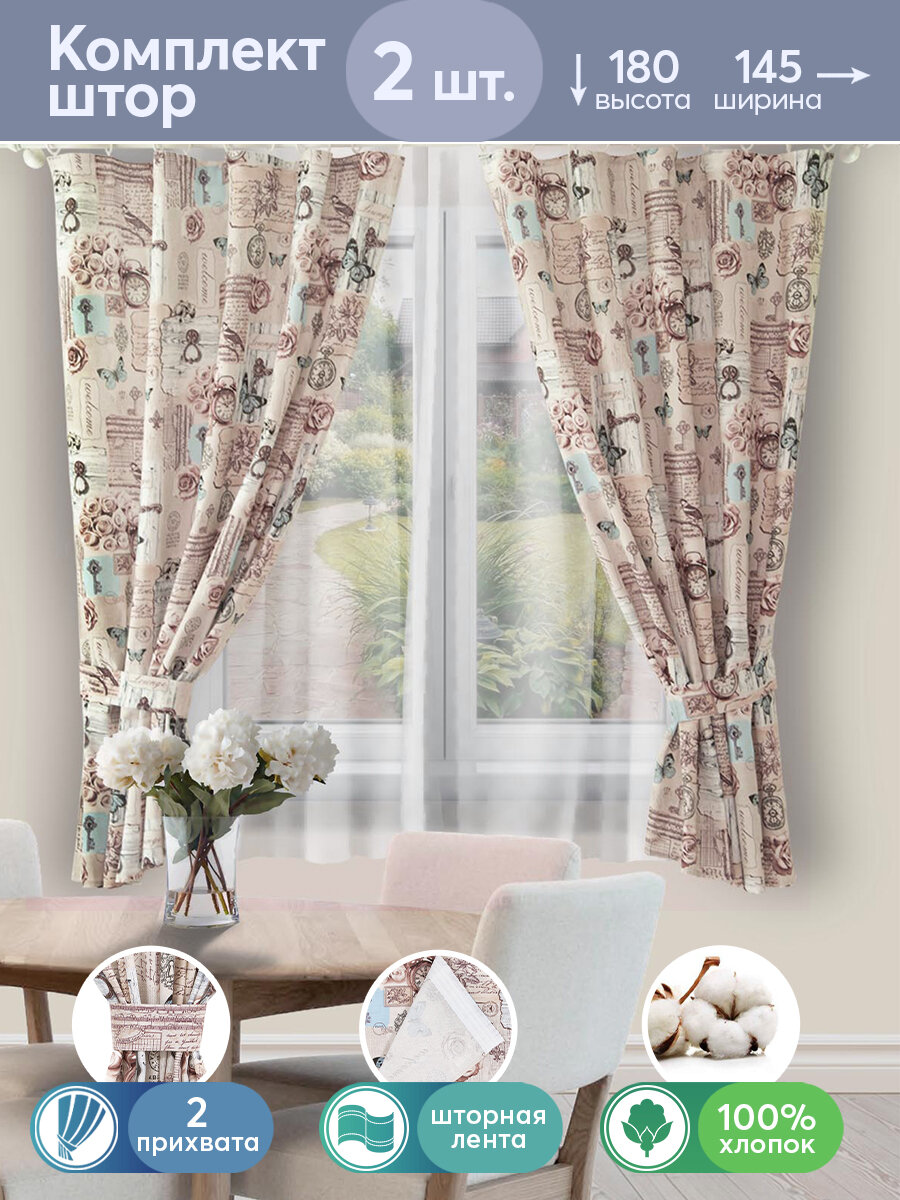 Шторы для кухни 145х180 (2 шт.) с подхватом Талавера