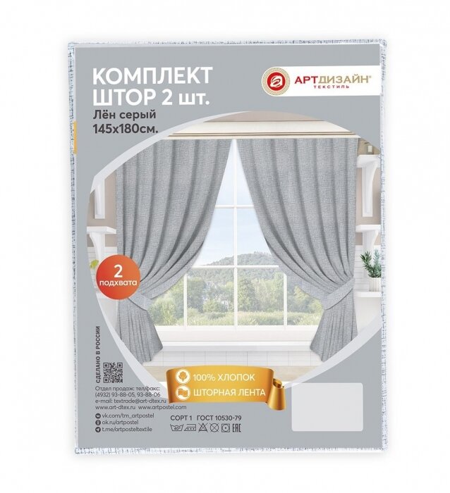 СохранитьШторы для кухни 145х180 (2 шт.) с подхватом Лён серый интересное: