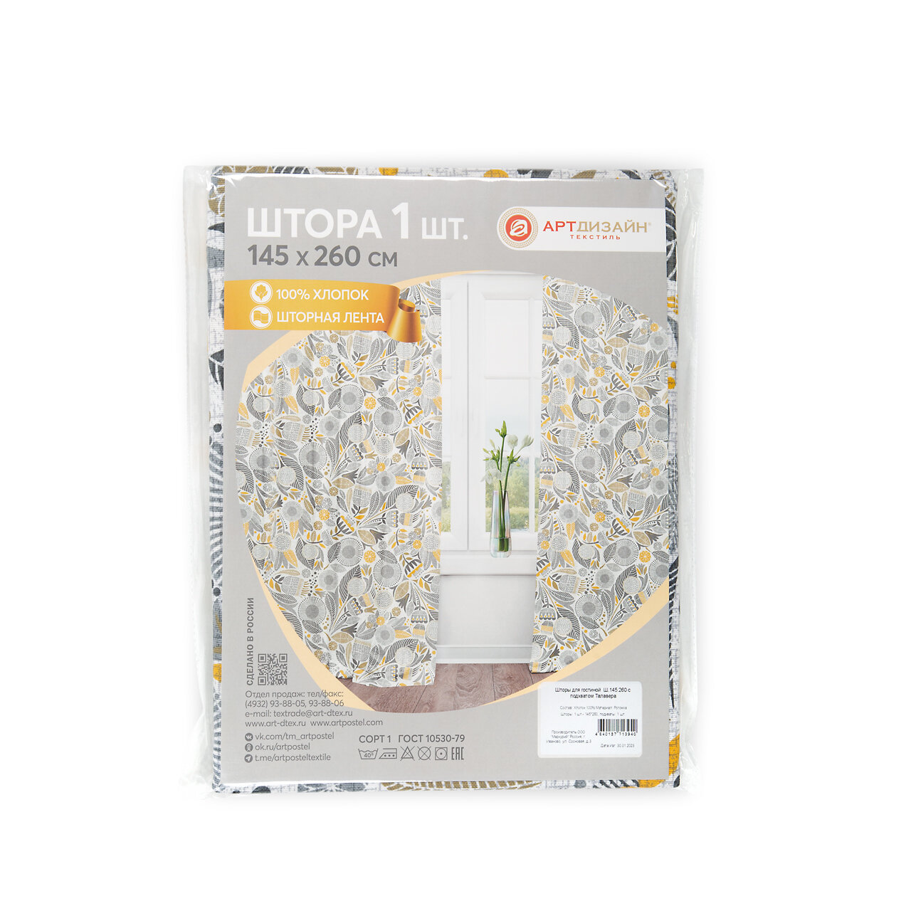 Купить Шторы для гостиной с подхватом Талавера Ш.145.260 АРТ ДИЗАЙН, 145*260, серый, желтый