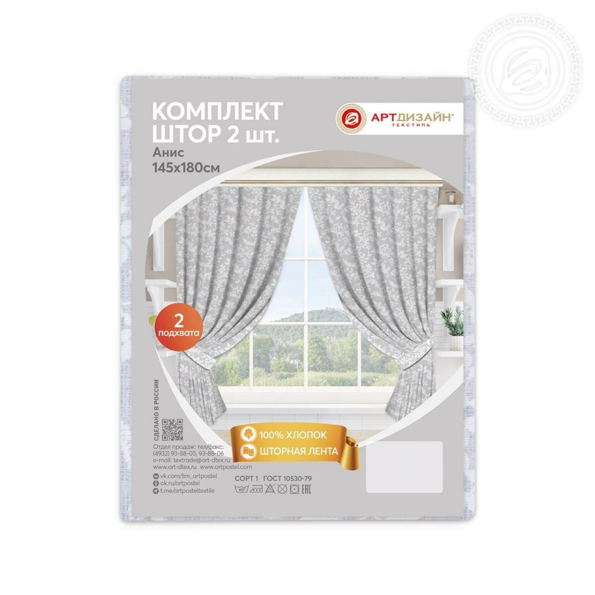 СохранитьШторы для кухни/комплект/2 штуки/145x260/с подхватами/рогожка/Арт Постель/Анис интересное: