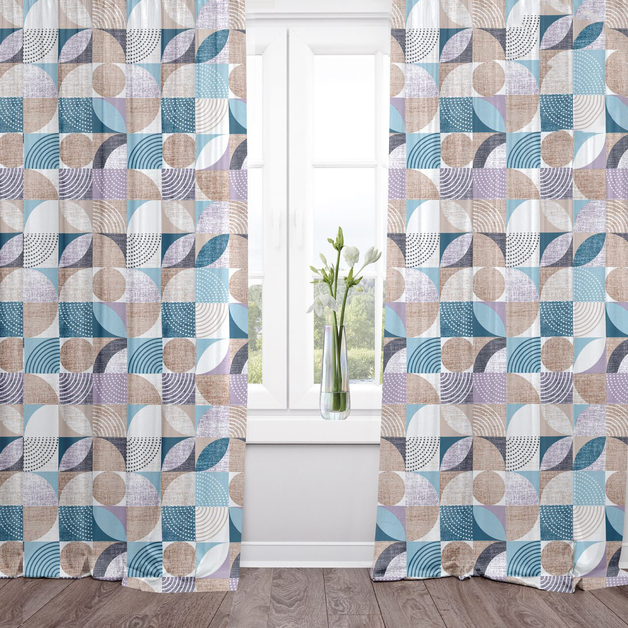 Купить Штора для гостиной с подхватом «Марципан» 145*260см, АртПостель, рогожка, 100% хлопок, разноцветный, геометрия