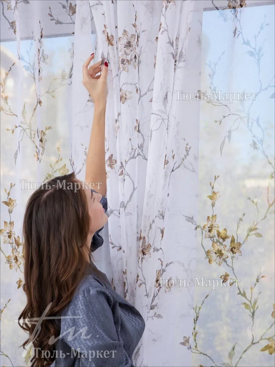 "Тюль-Маркет", тюль под лён с цветами для спальни и в гостиную, 5м х 2.2м интересное: