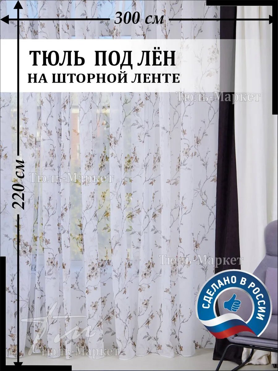 Купить "Тюль-Маркет", тюль под лён с цветами для спальни, в гостиную и в детскую, 3м х 2.2м