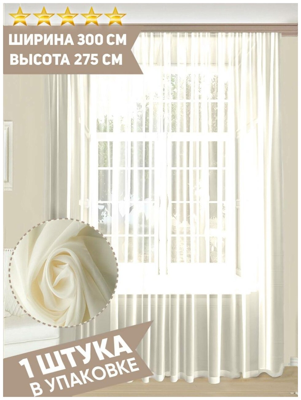 Тюль вуаль молочная , Артнить, без утяж " Экрю" ширина 300 высота 275 см ,1 шт интересное:
