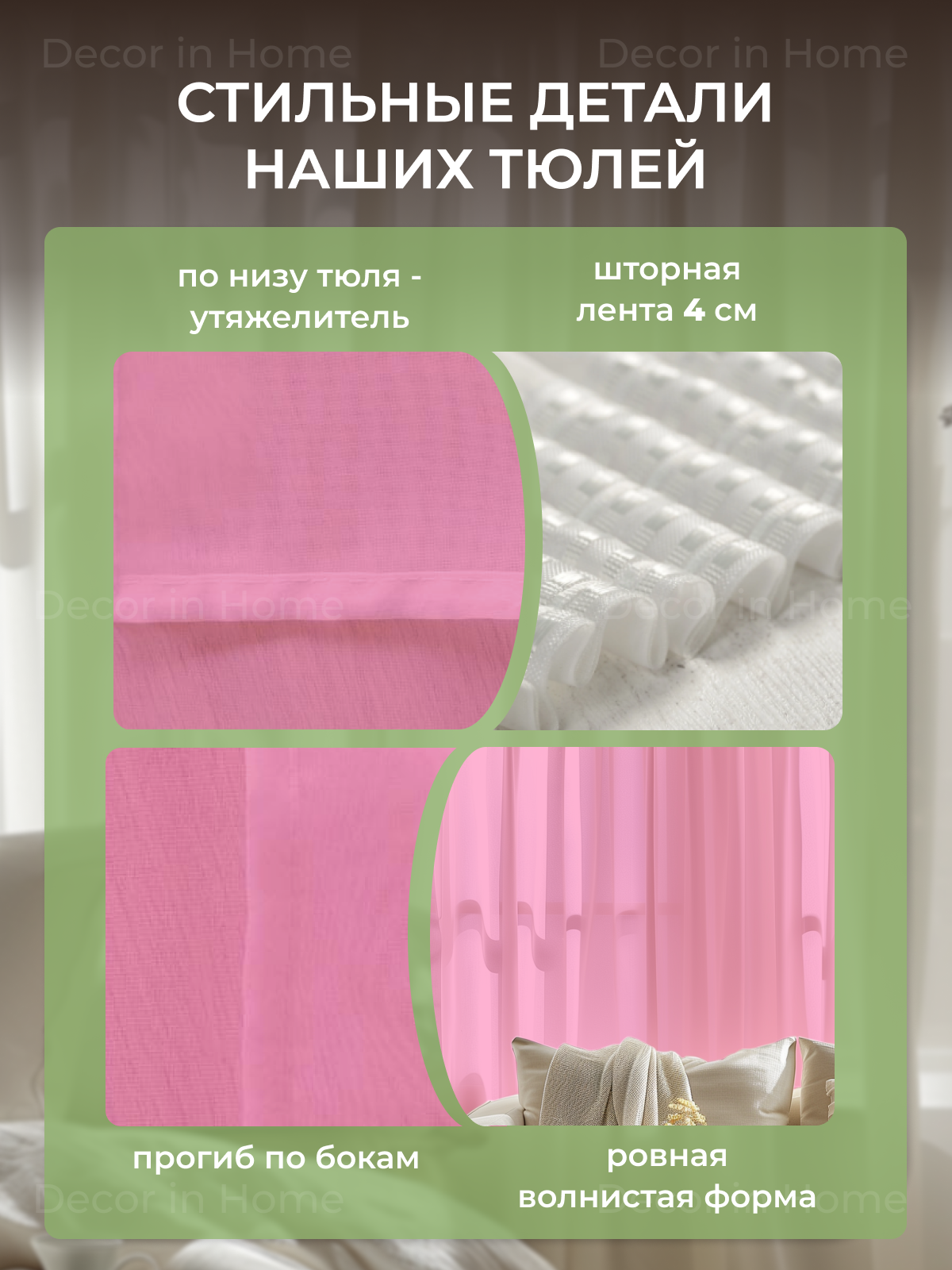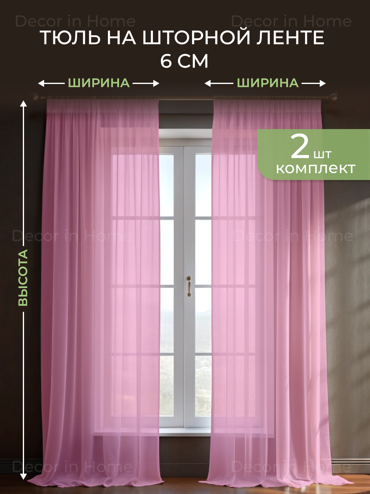 СохранитьТюль-Вуаль "DECOR in Home" комплект из 2 шт, розовый, ширина 150 см высота 200 интересное: