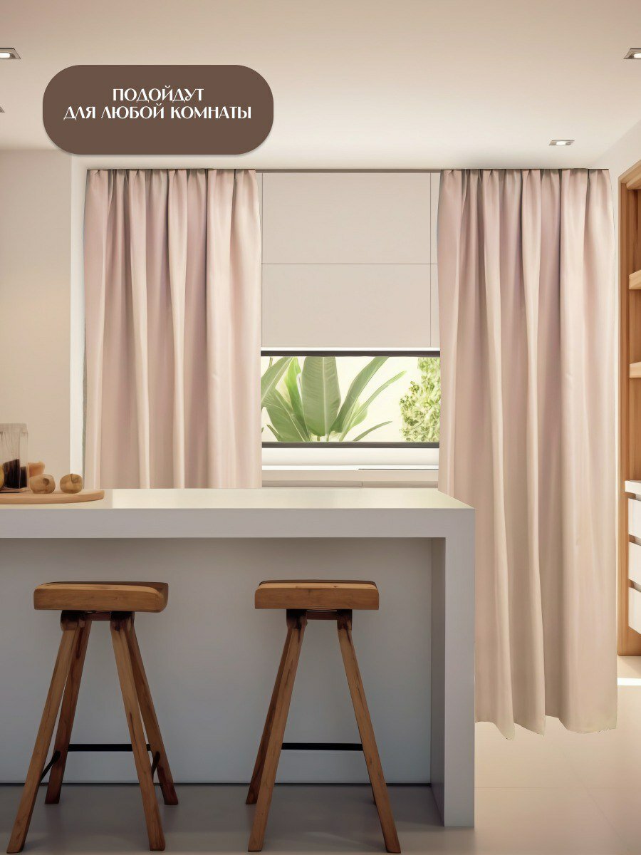 Шторы Блэкаут бежевые двухсторонние 400x250 см для гостиной, спальни, детской, кухни / светонепроницаемые интересное: