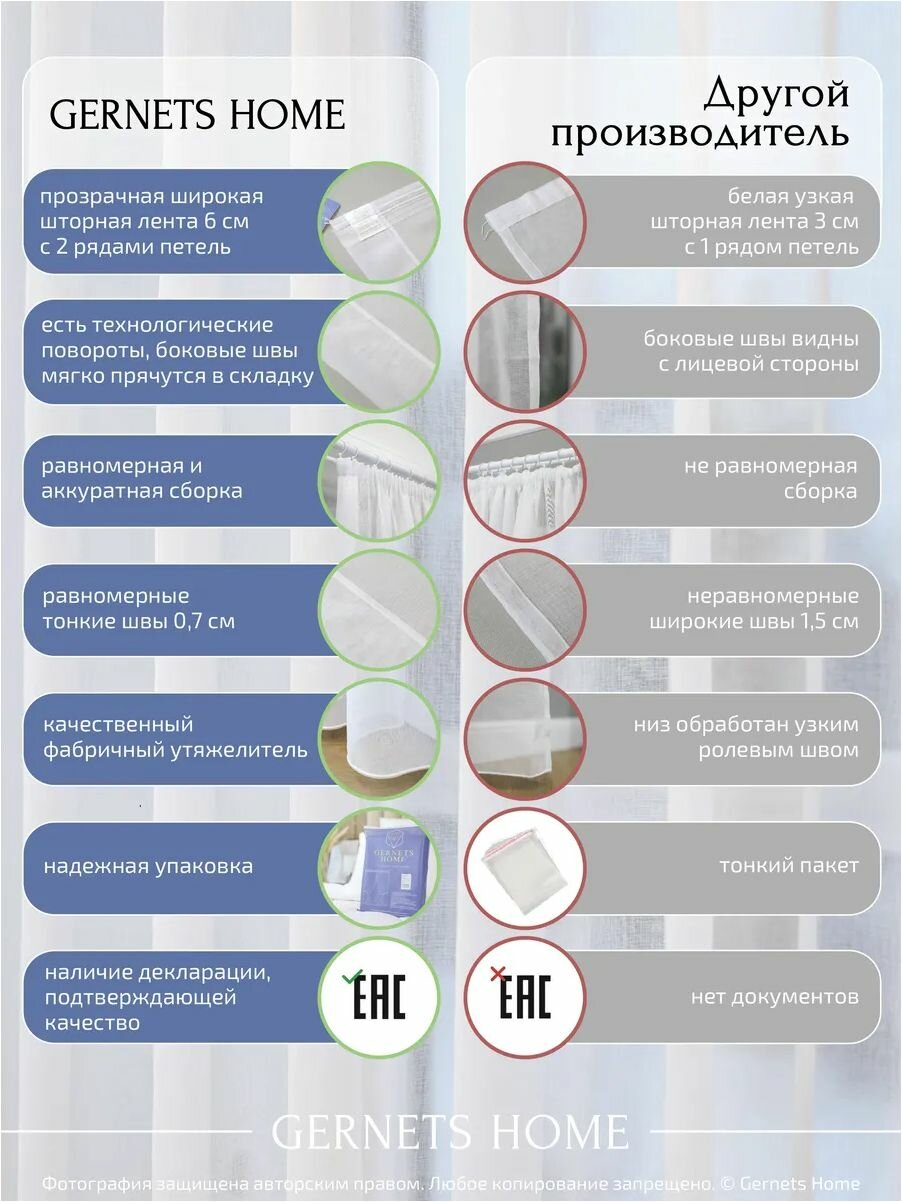 Тюль под лён ширина 300 высота 260 см белый для комнаты Gernets Home