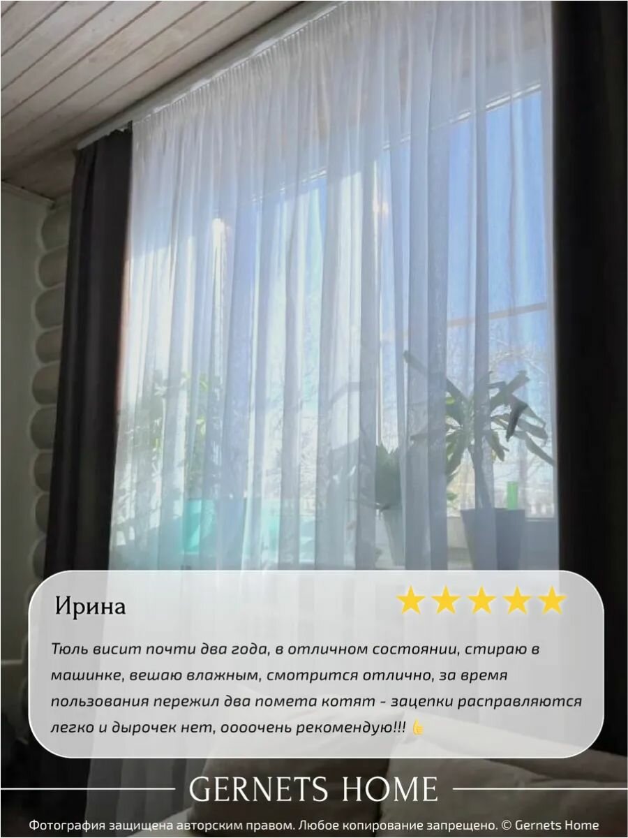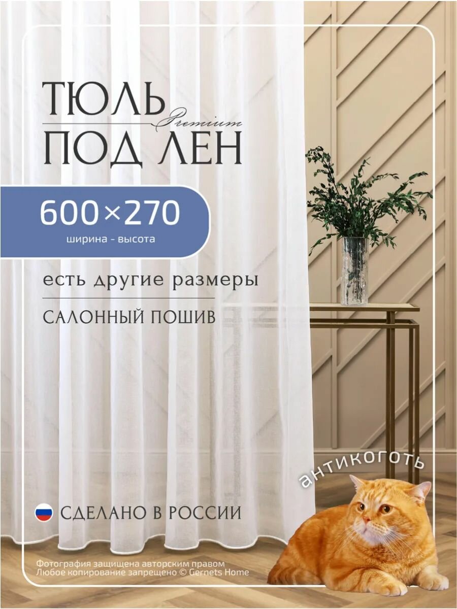 Тюль под лён ширина 300 высота 260 см белый для комнаты Gernets Home