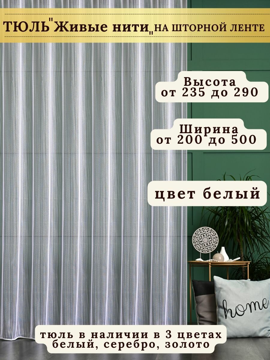 Купить Тюль на шторной ленте в спальню в гостиную на кухню в детскую длина 245 ширина 200 цвет белый живые нити
