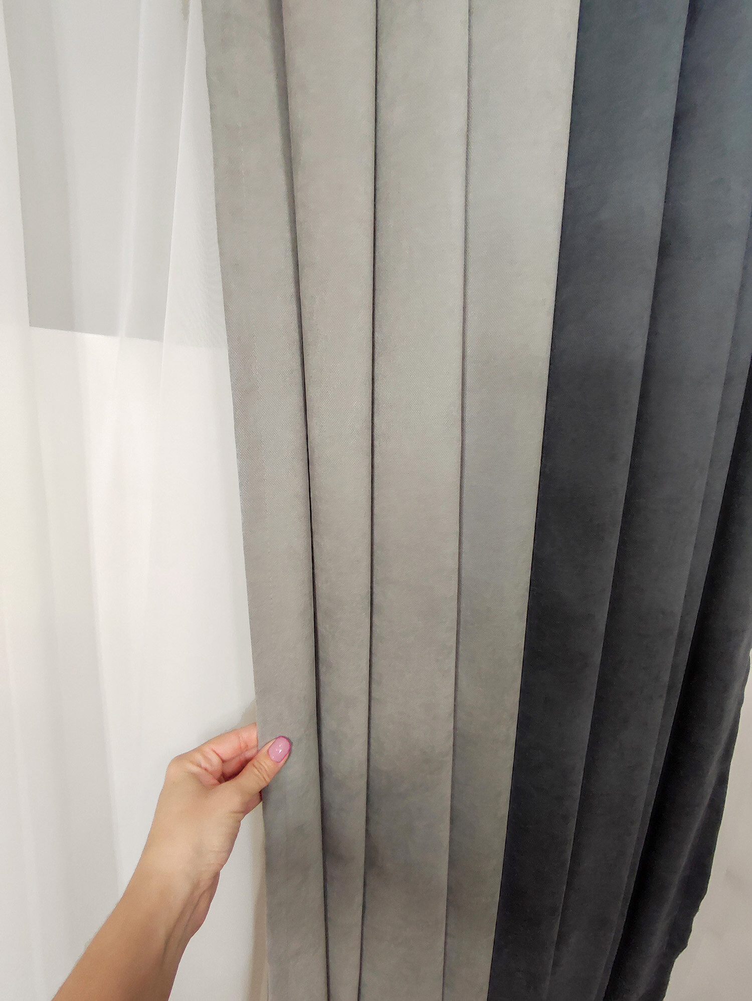 Штора для комнаты 200х240 - 1 шт. серый/светло-серый. Штора для гостиной, спальни, детской, кухни, зала, кабинета, дачи, занавески, канвас, интерьерные, длинные, комбинированные, двухцветные, плотные, кухонные, ночные