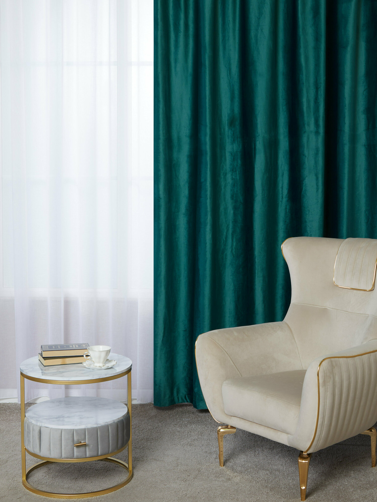 Готовый комплект плотных интерьерных штор(портьер) бархат (2 шт, каждая штора 150x280 см) со шторной лентой