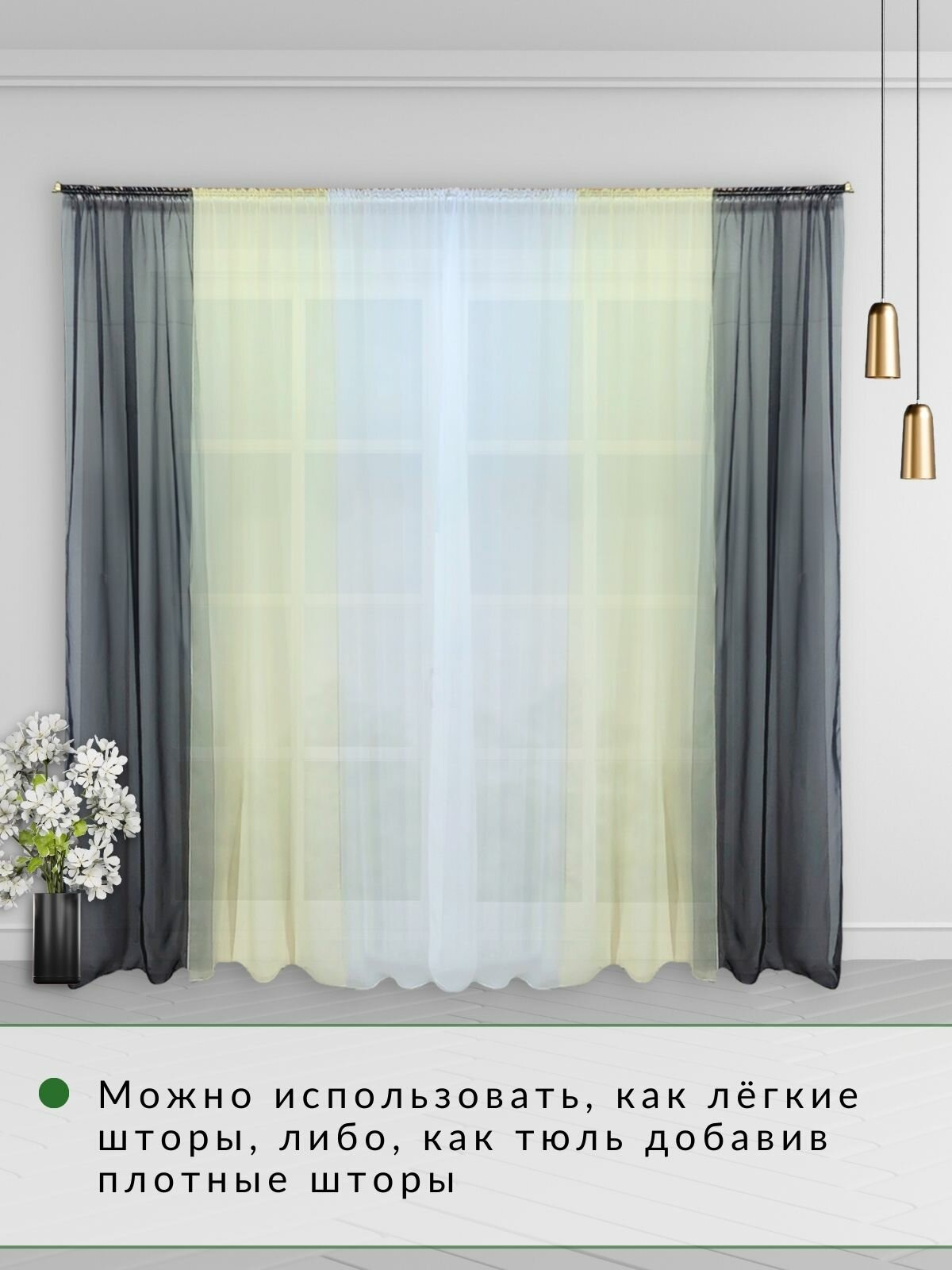 Шторы для комнаты комплект тюль вуаль "Радуга" зеленый/желтый, высота 250см