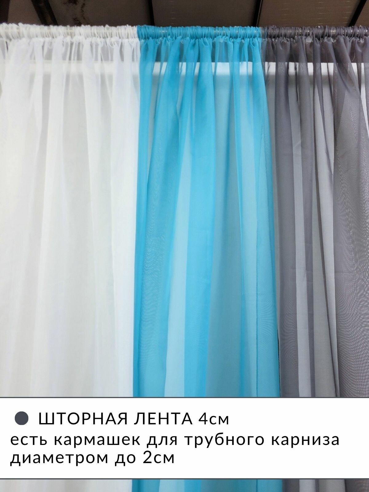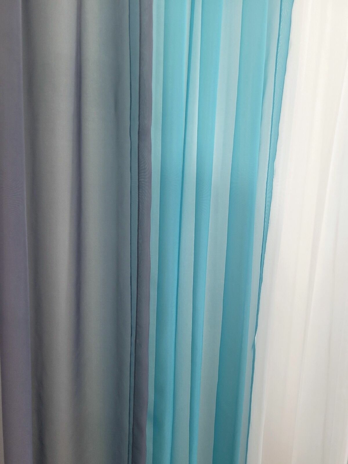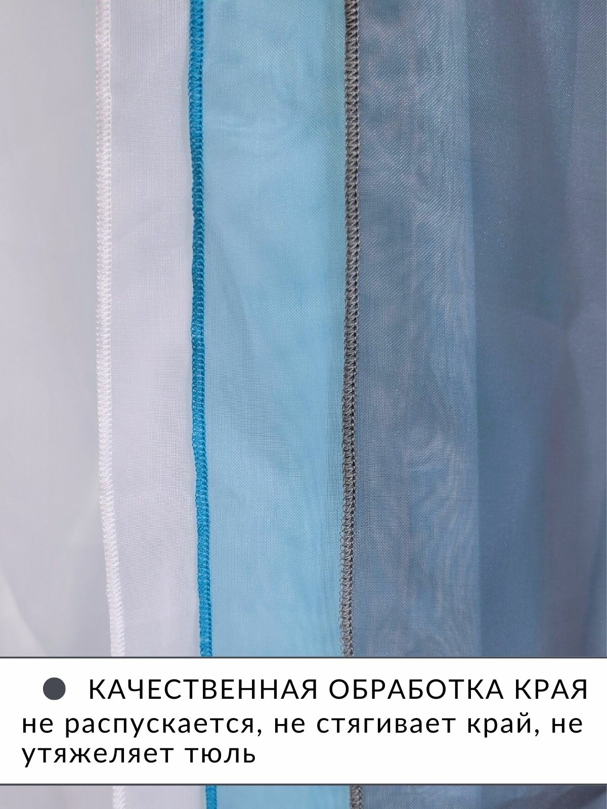 Шторы для комнаты с разрезами вуаль Домтекс35 "Радуга" бирюзовый/светло-серый/белый, высота 250см