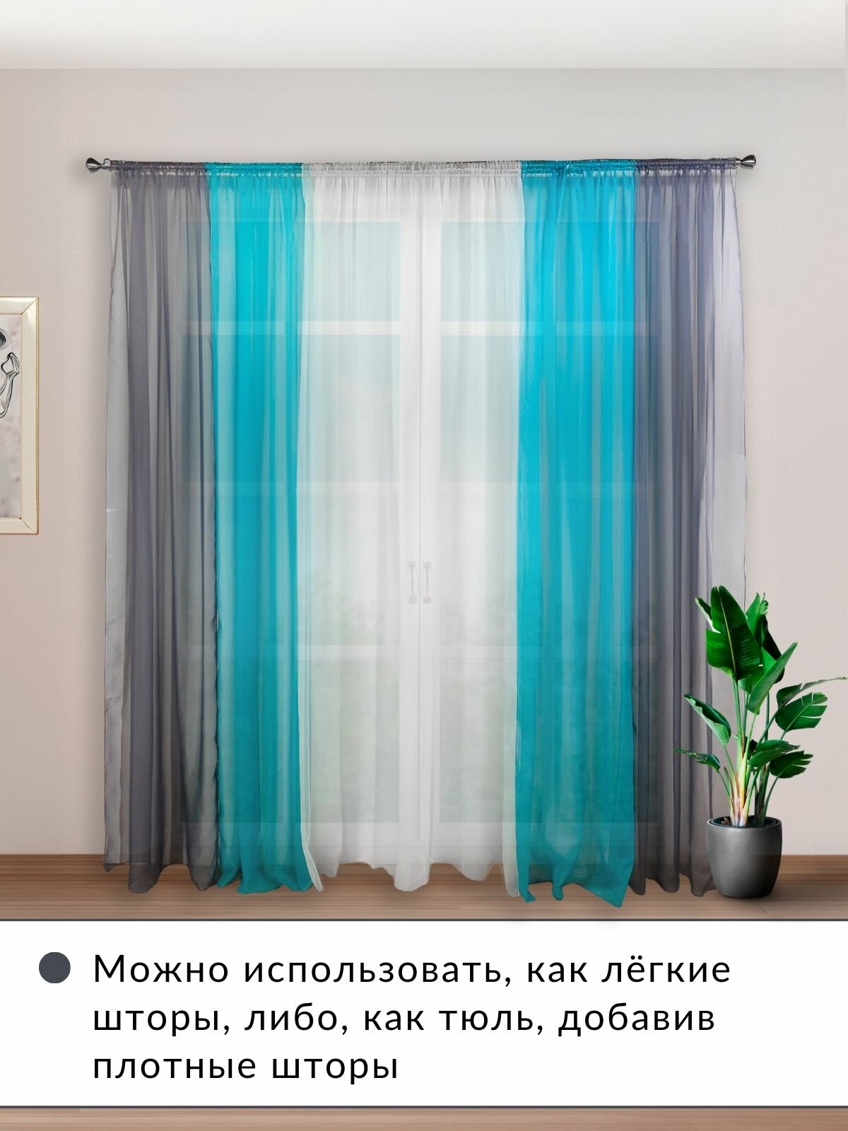 СохранитьШторы для комнаты комплект тюль вуаль "Радуга" графит/бирюзовый, высота 250см интересное: