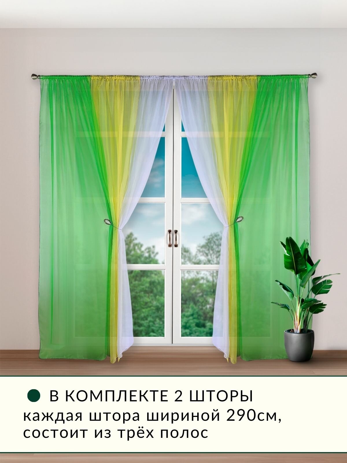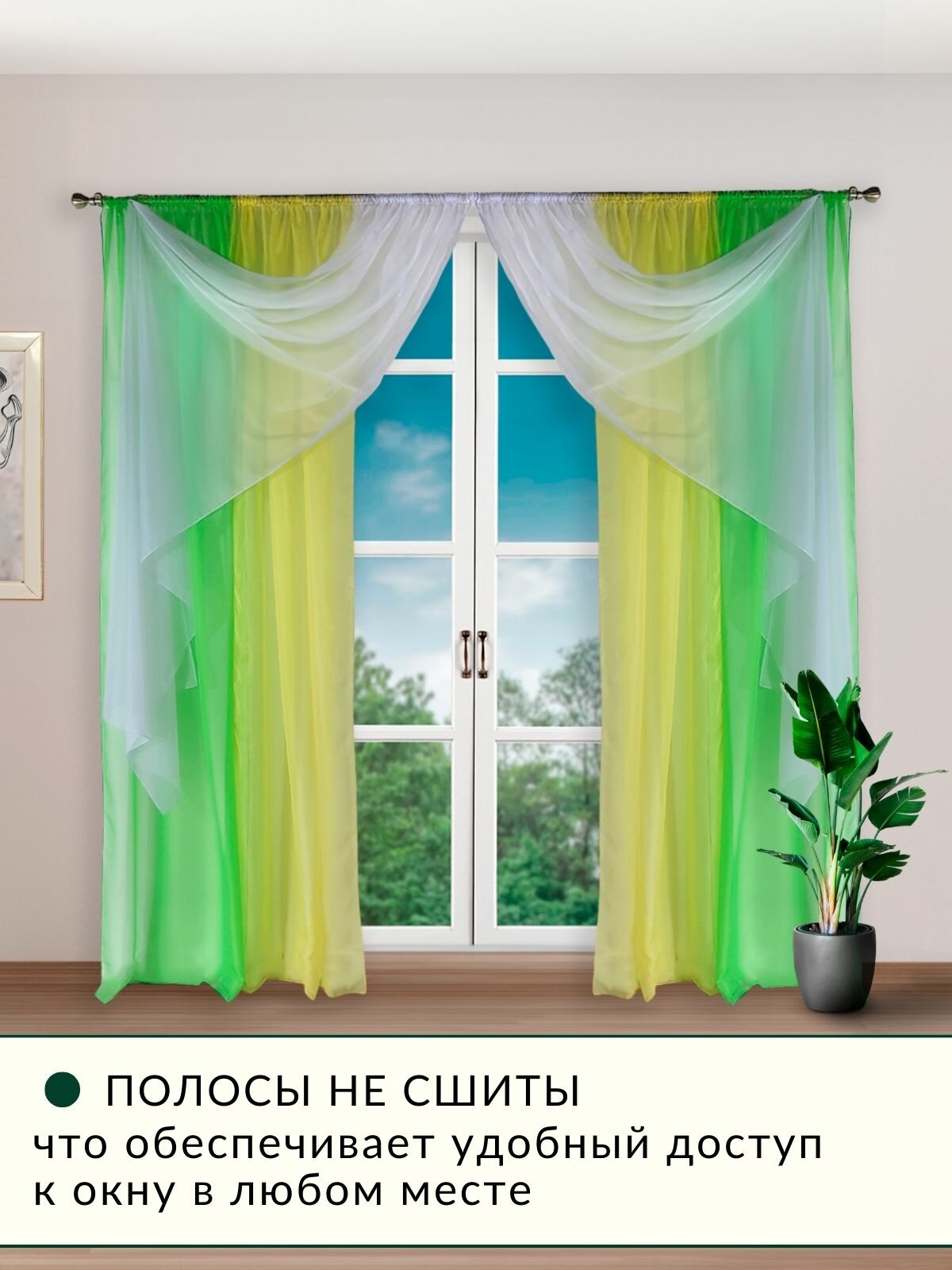 Купить Шторы для комнаты комплект тюль вуаль "Радуга" зеленый/желтый, высота 250см