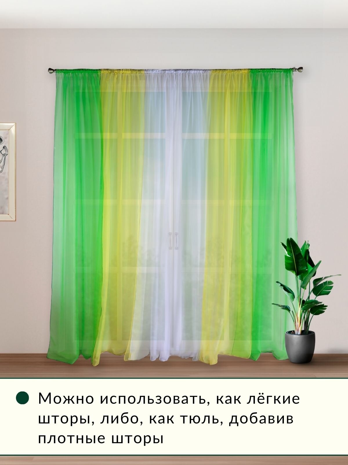 СохранитьШторы для комнаты комплект тюль вуаль "Радуга" зеленый/желтый, высота 250см интересное: