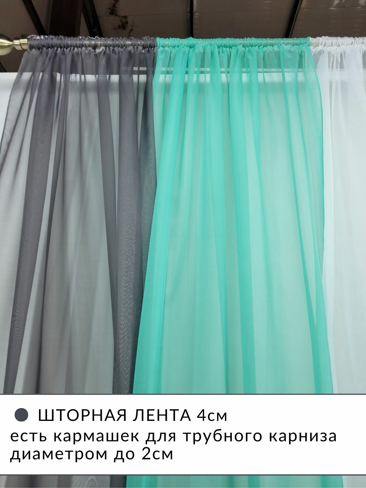 Купить Шторы для комнаты с разрезами вуаль Домтекс35 "Радуга" зеленая мята/графит/белый, высота 250см