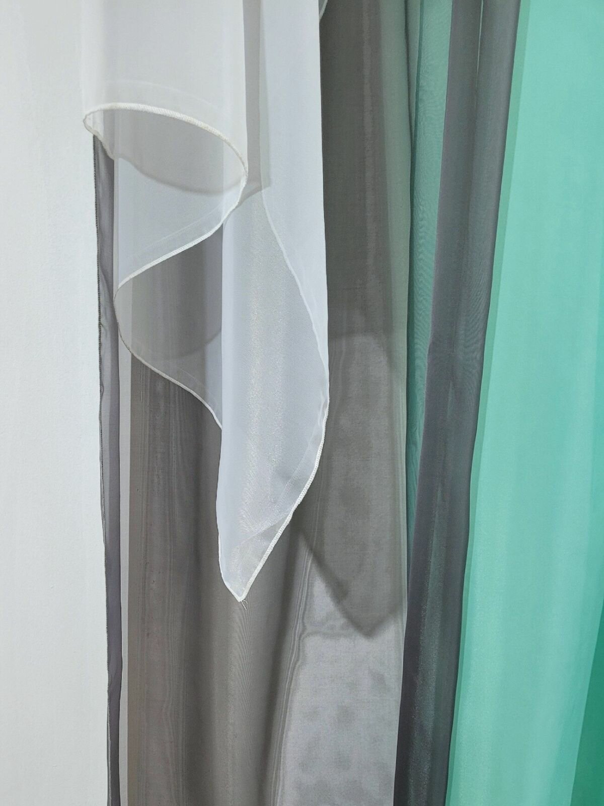 СохранитьШторы для комнаты с разрезами вуаль Домтекс35 "Радуга" зеленая мята/графит/белый, высота 250см интересное: