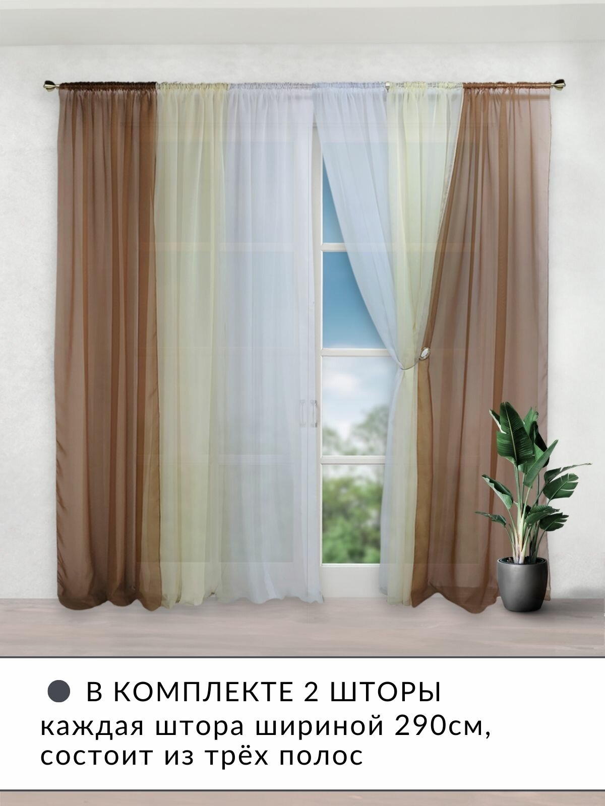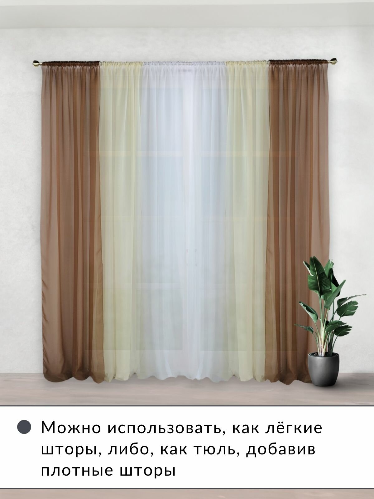 Шторы для комнаты комплект тюль вуаль "Радуга" венге/бежевый, высота 250см