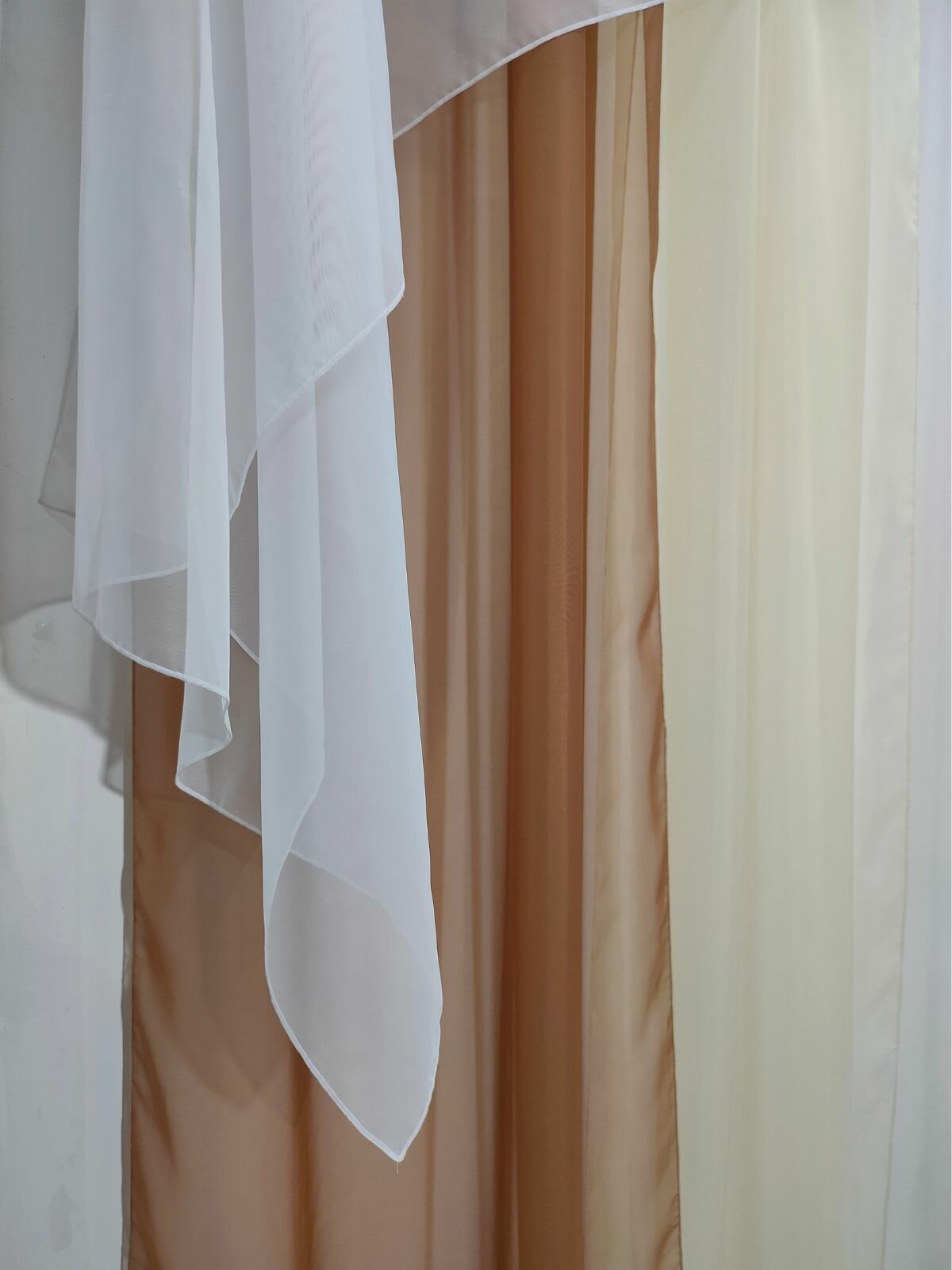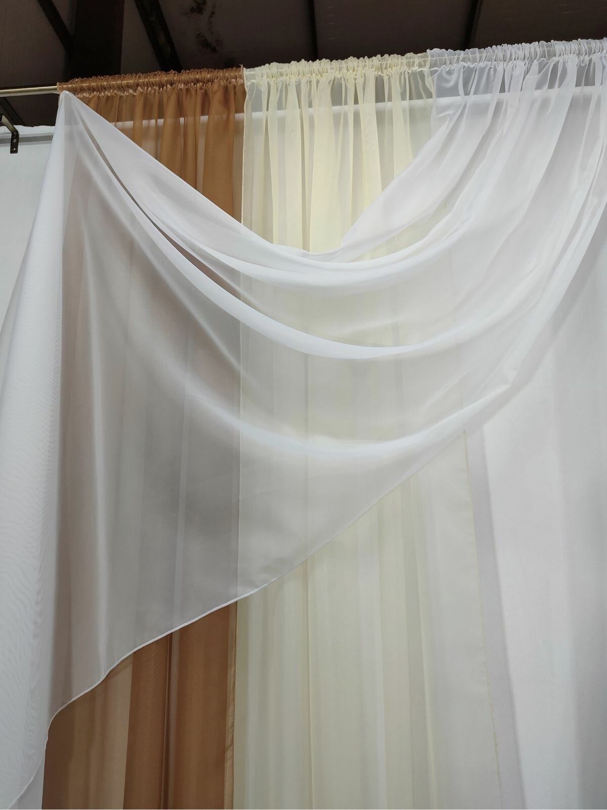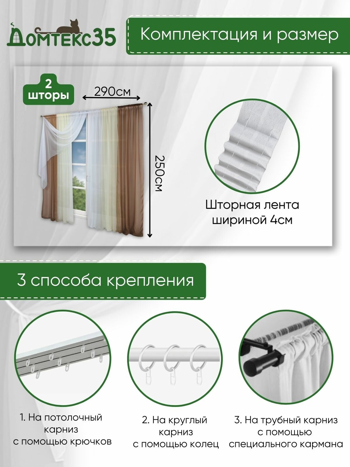 СохранитьШторы для комнаты комплект тюль вуаль "Радуга" бежевый/молочный, высота 250см интересное: