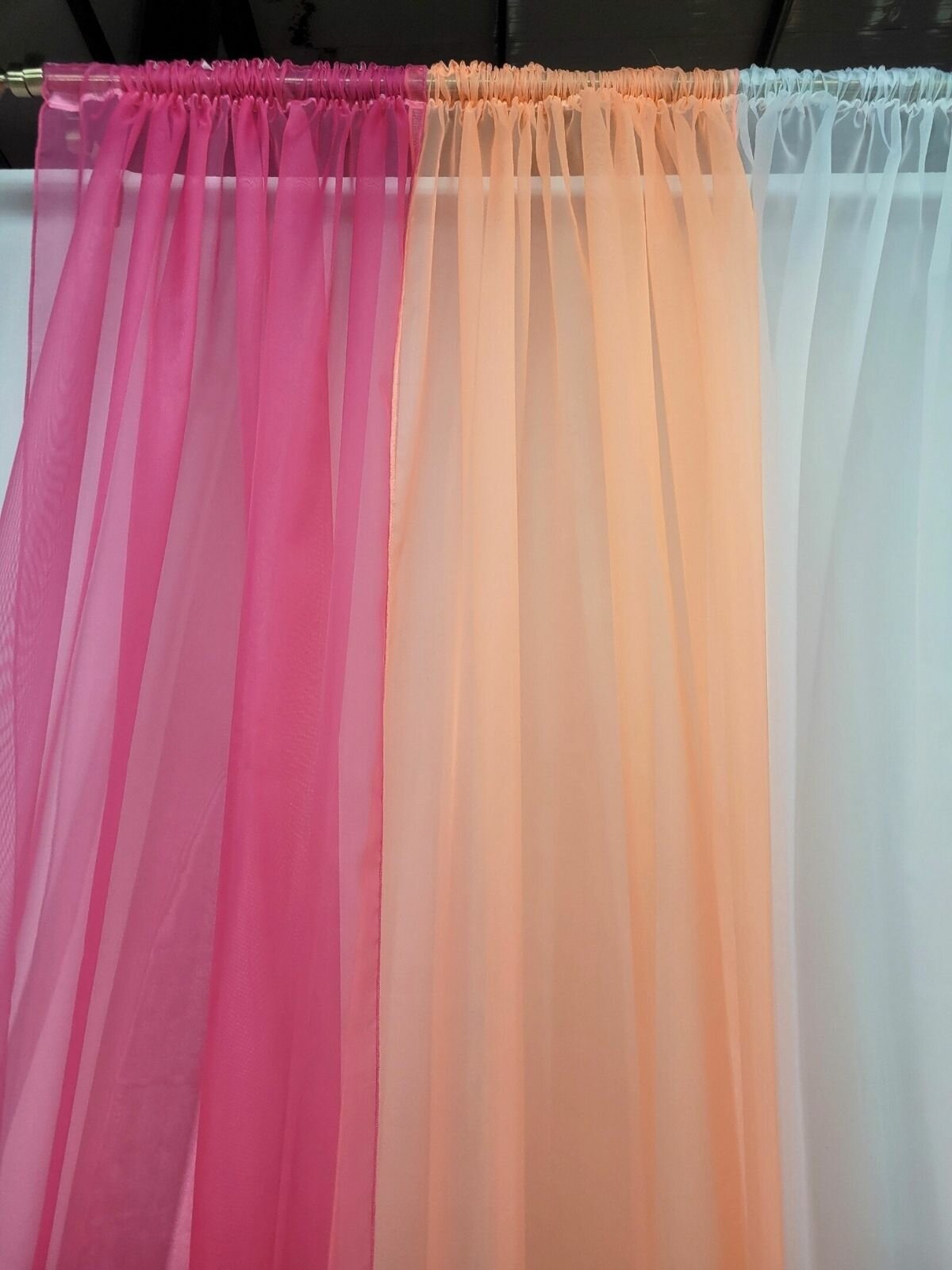 Купить Шторы для комнаты комплект тюль вуаль "Радуга" розовый/персик, высота 250см