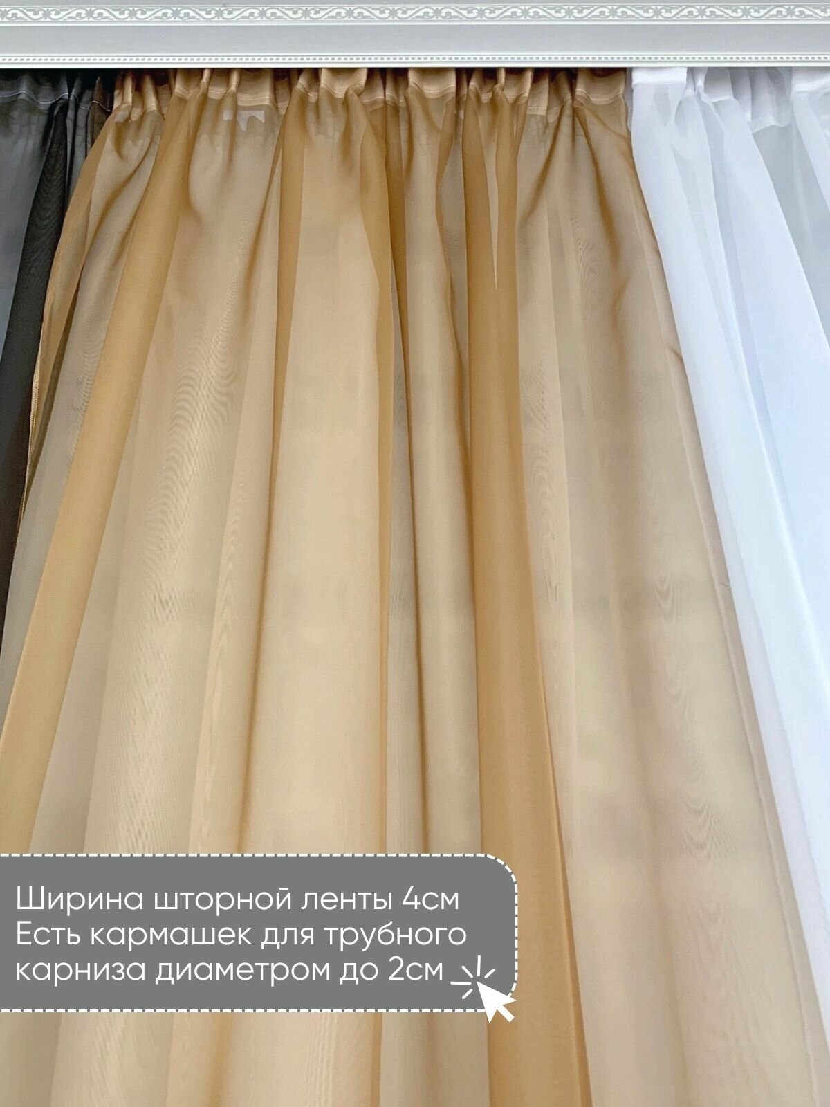 Шторы для комнаты комплект тюль вуаль "Радуга" бежевый/молочный, высота 250см
