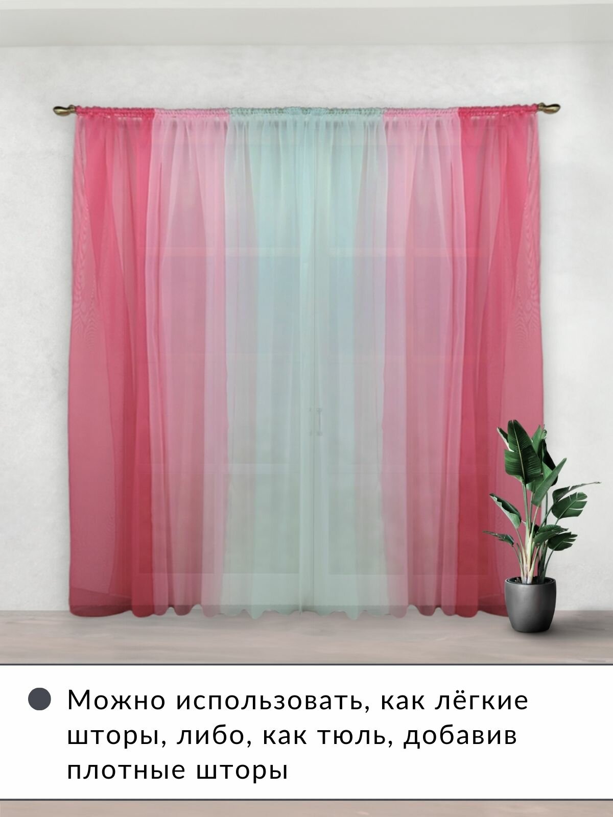 СохранитьШторы для комнаты комплект тюль вуаль "Радуга" фуксия/розовый, высота 250см интересное: