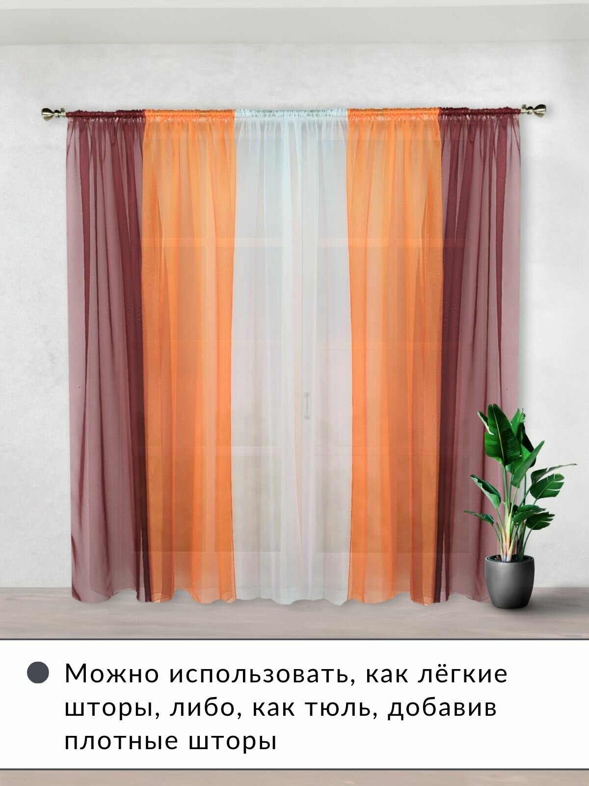 Шторы для комнаты комплект тюль вуаль "Радуга" баклажан/персик, высота 250см