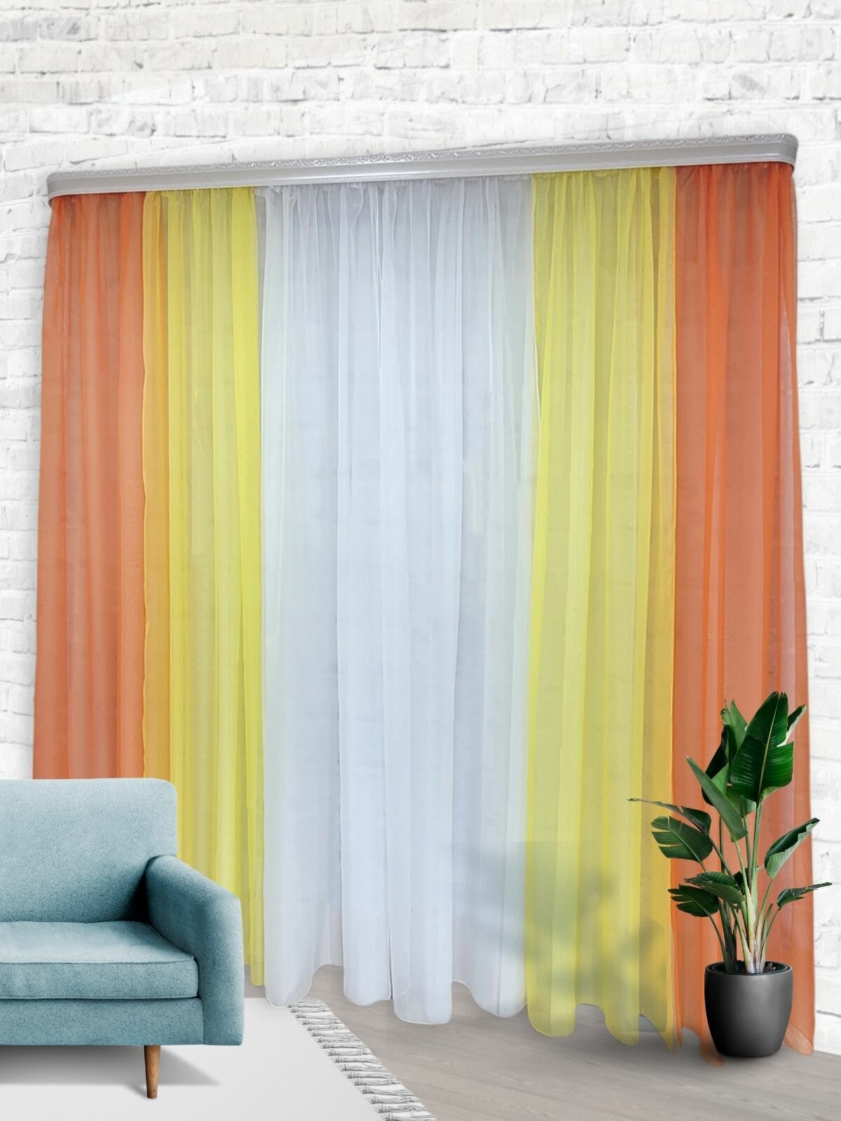 Купить Шторы для комнаты комплект тюль вуаль Виольга "Радуга" оранжевый/желтый, высота 250см