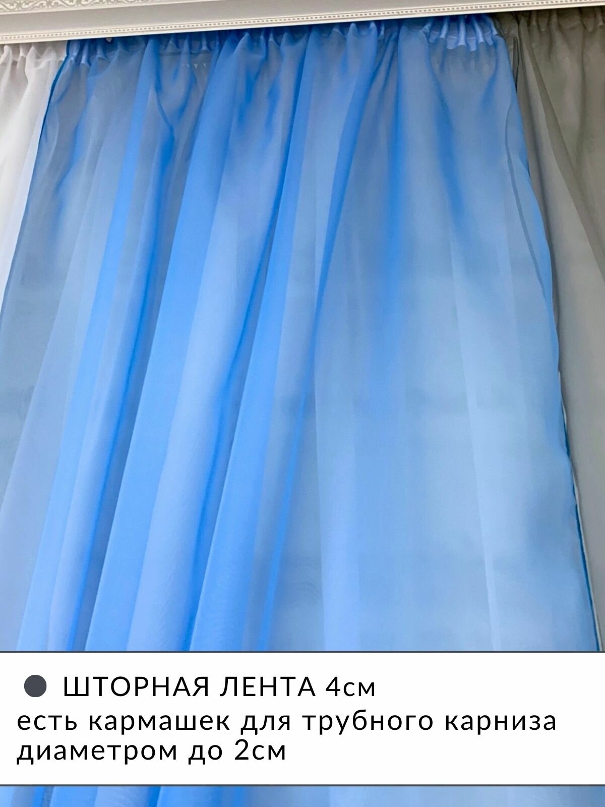 Шторы для комнаты комплект тюль вуаль "Радуга" синий/голубой, высота 250см