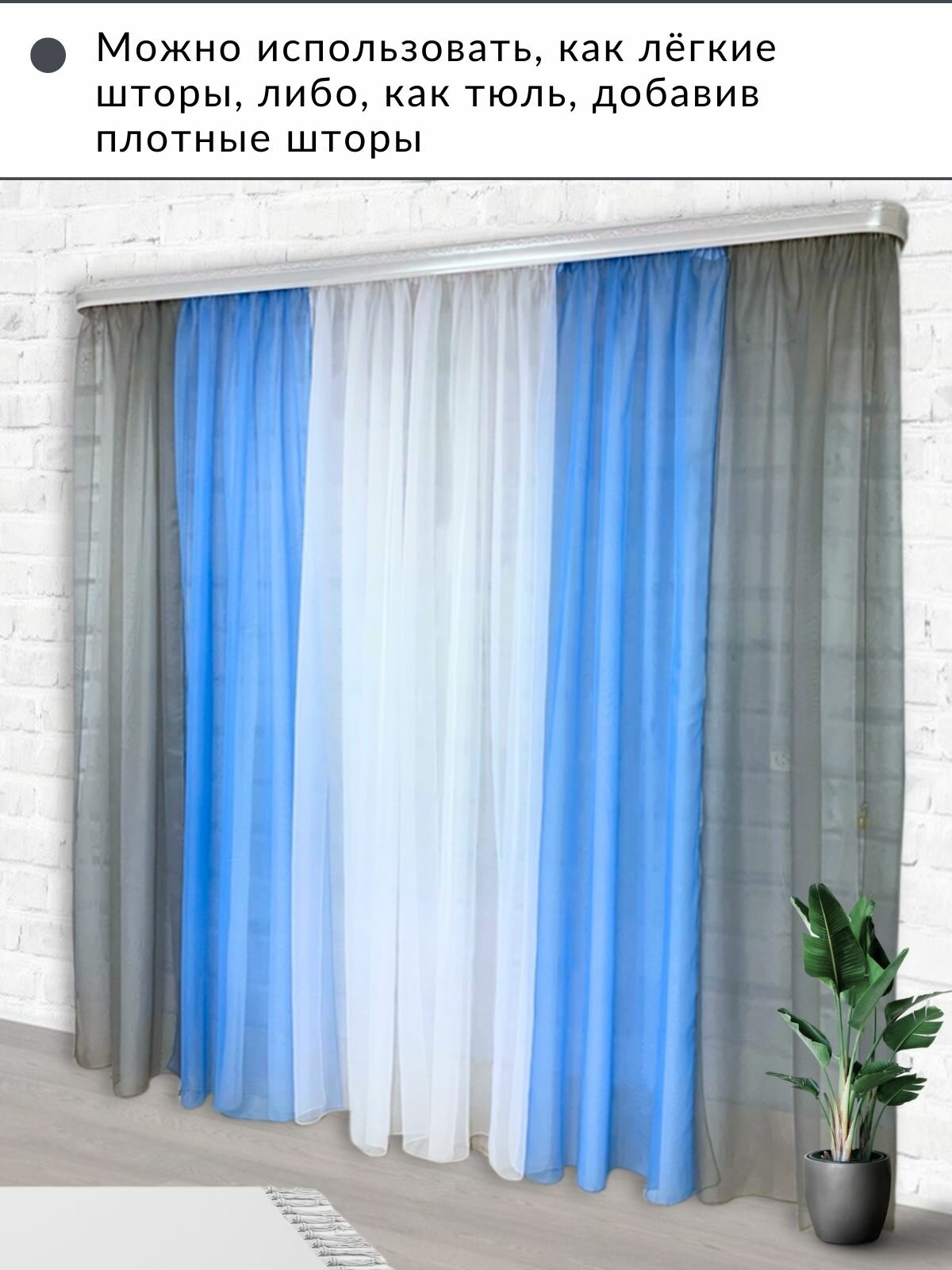 СохранитьШторы для комнаты комплект тюль вуаль "Радуга" голубой/серый, высота 250см интересное: