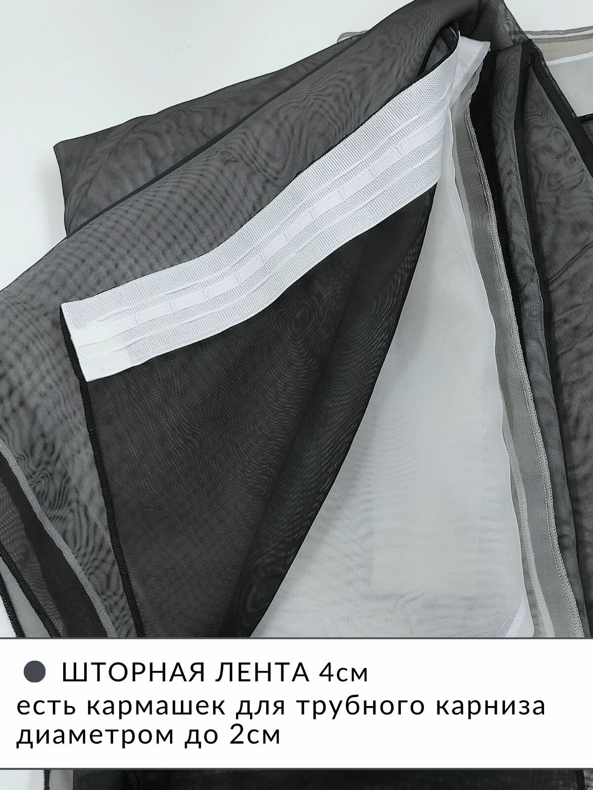 Шторы для комнаты комплект тюль вуаль "Радуга" черный/молочный, высота 250см