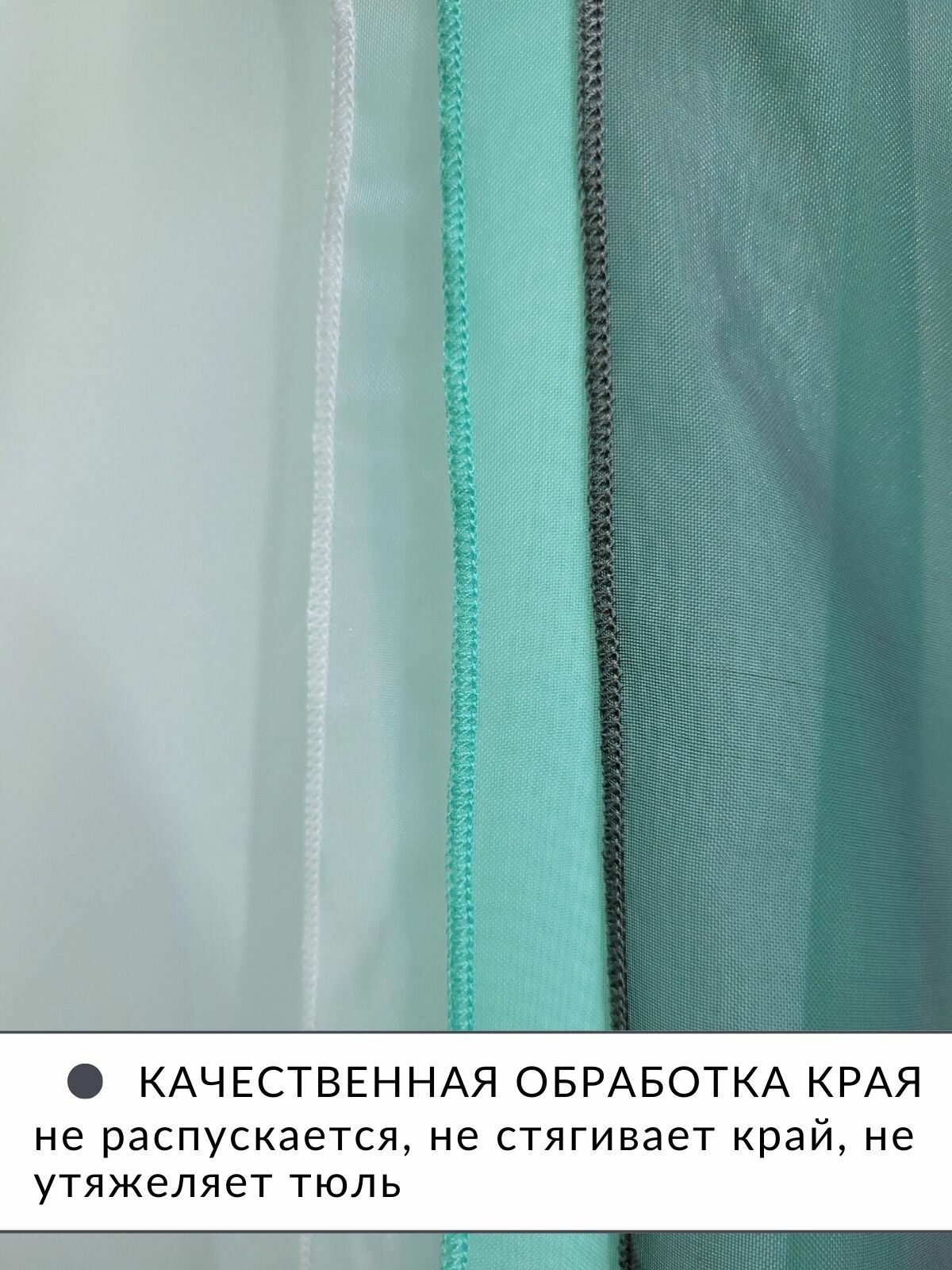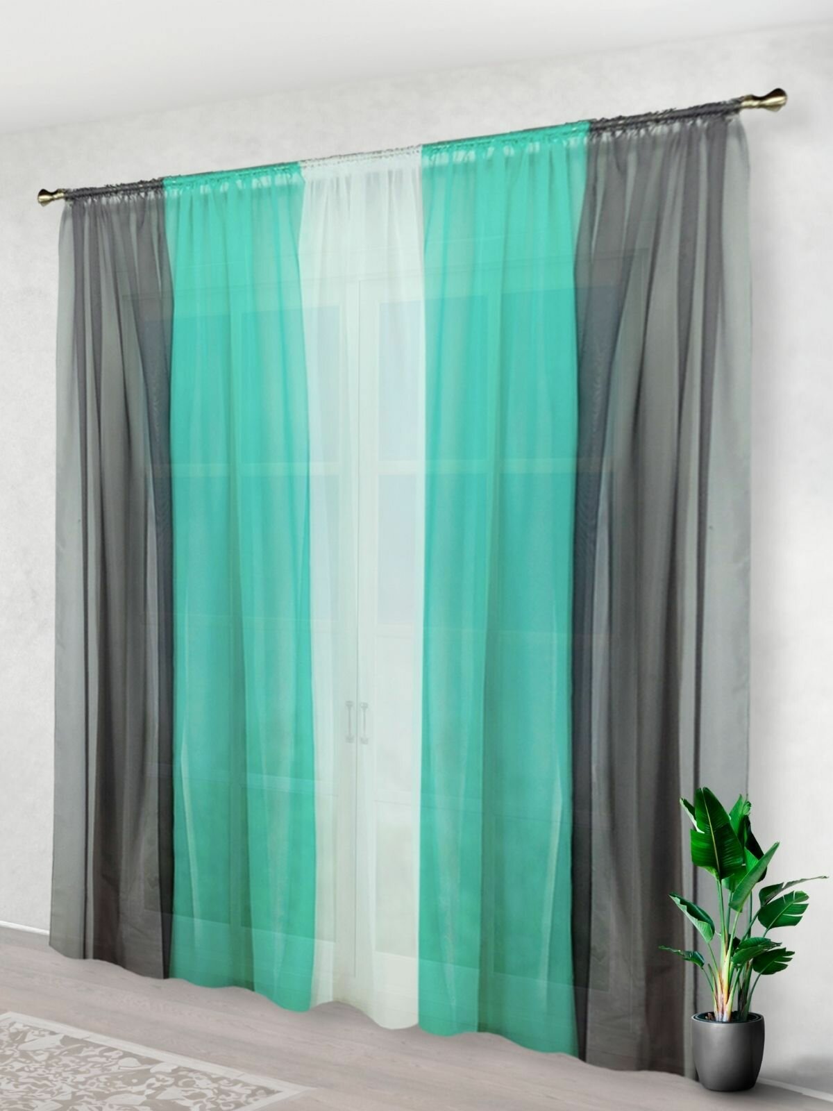 Шторы для комнаты с разрезами вуаль Домтекс35 "Радуга" зеленая мята/графит/белый, высота 250см
