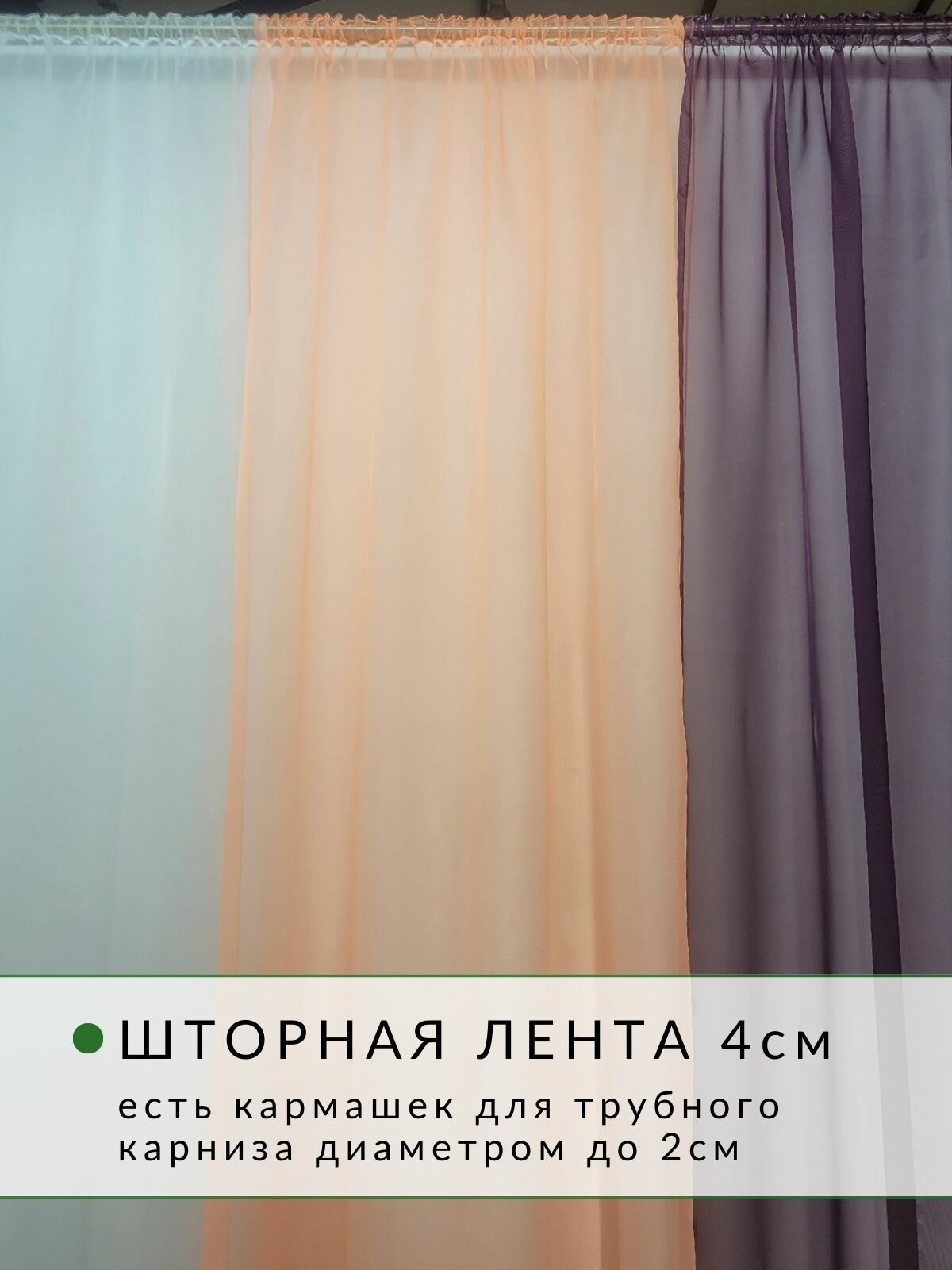 Шторы для комнаты с разрезами вуаль Домтекс35 "Радуга" зеленая мята/графит/белый, высота 250см