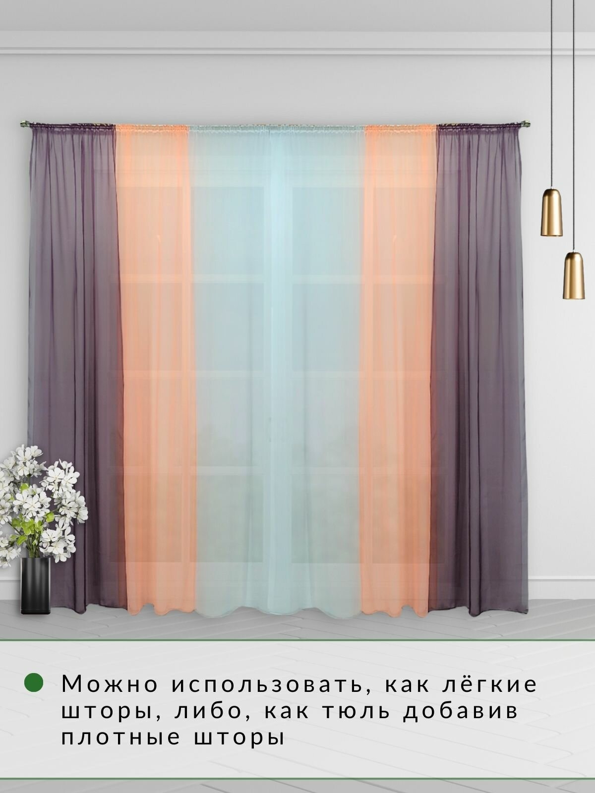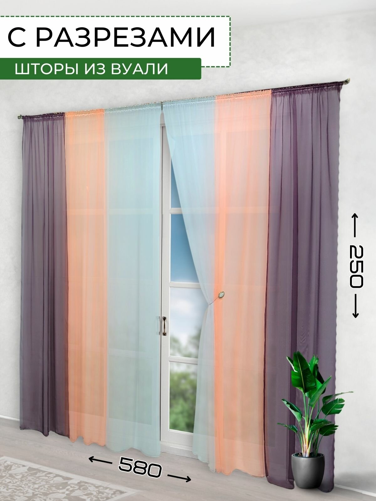 СохранитьШторы для комнаты комплект тюль вуаль "Радуга" баклажан/персик, высота 250см интересное: