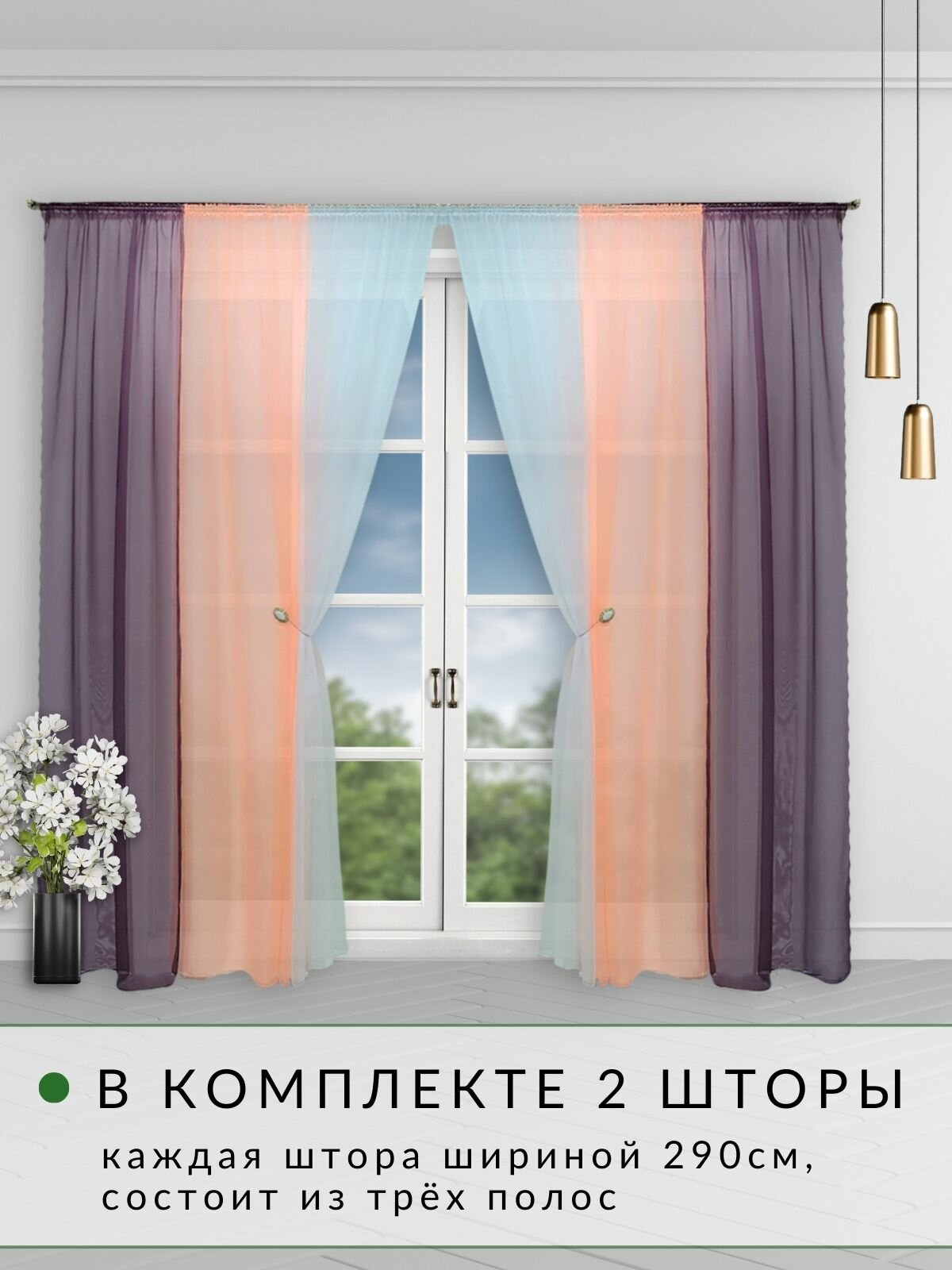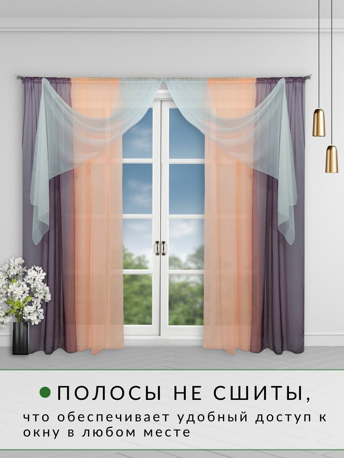 Купить Шторы для комнаты комплект тюль вуаль "Радуга" баклажан/персик, высота 250см