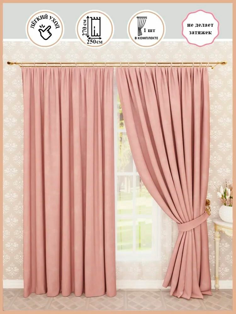 Штора для комнаты 250 х 290 см (1шт.) розовая, в спальню и гостиную, на кухню