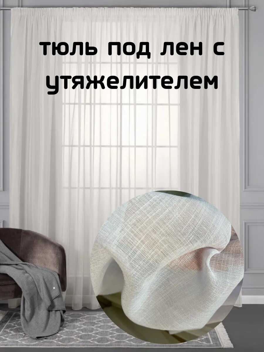 Тюль под лён в гостиную и спальню 500*250см