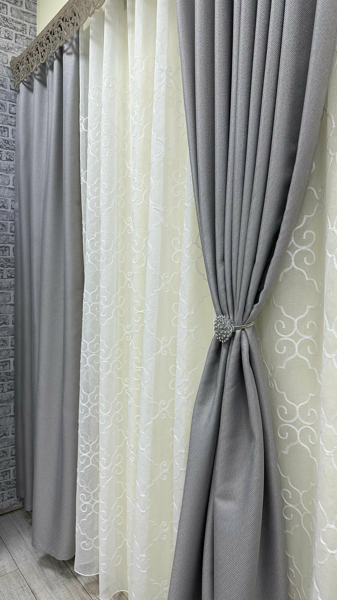 Портьеры фактурные серые, 3м , высота 2,7м