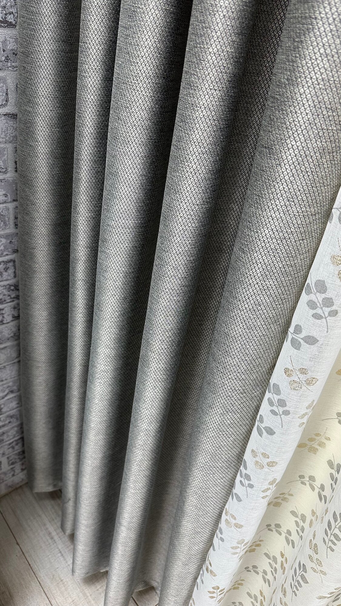 Портьеры блэкаут рогожка лен серые, ширина 3м, высота 2,7м