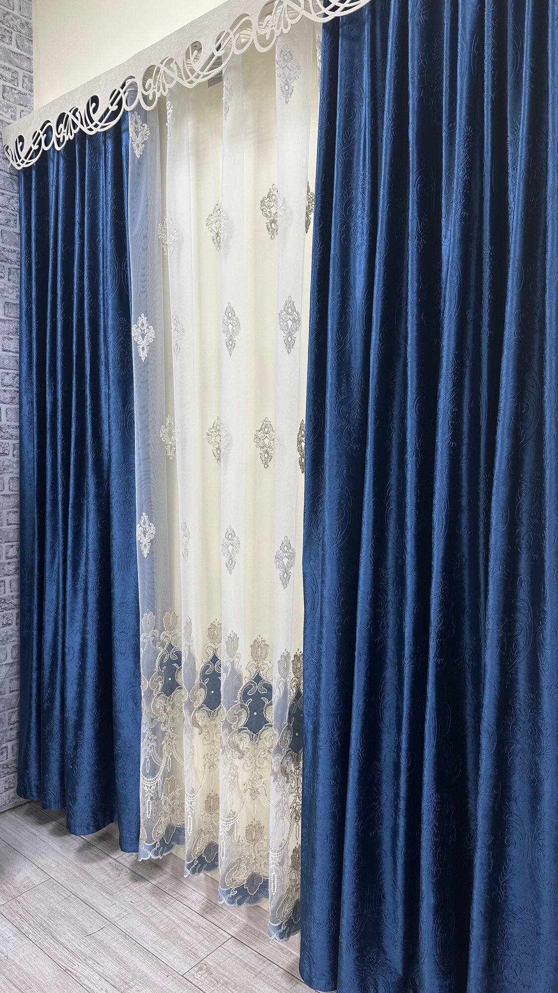 Купить Портьеры бархатные темно-синие, 4м ширина, высота 270см