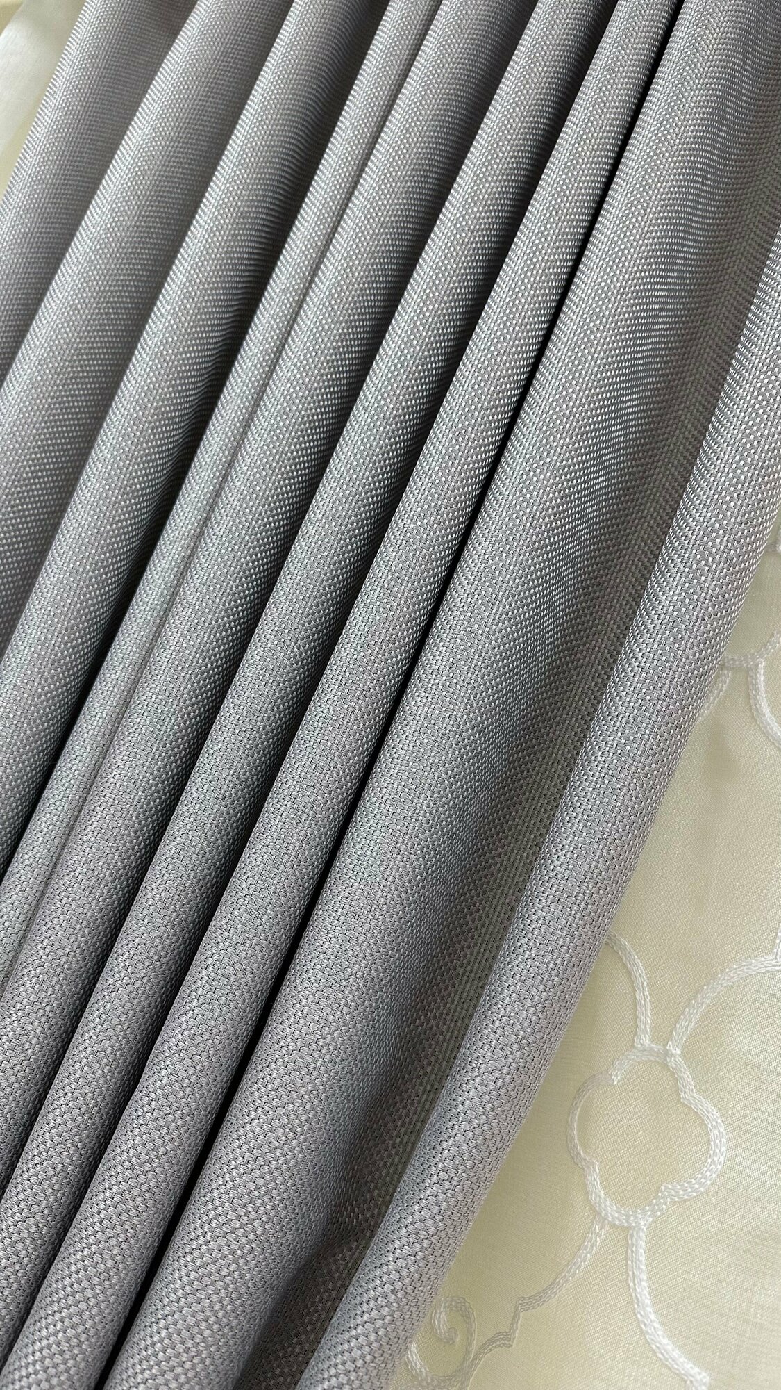 Портьеры канвас штрих светло-серый, ширина 4м, высота 2,7м