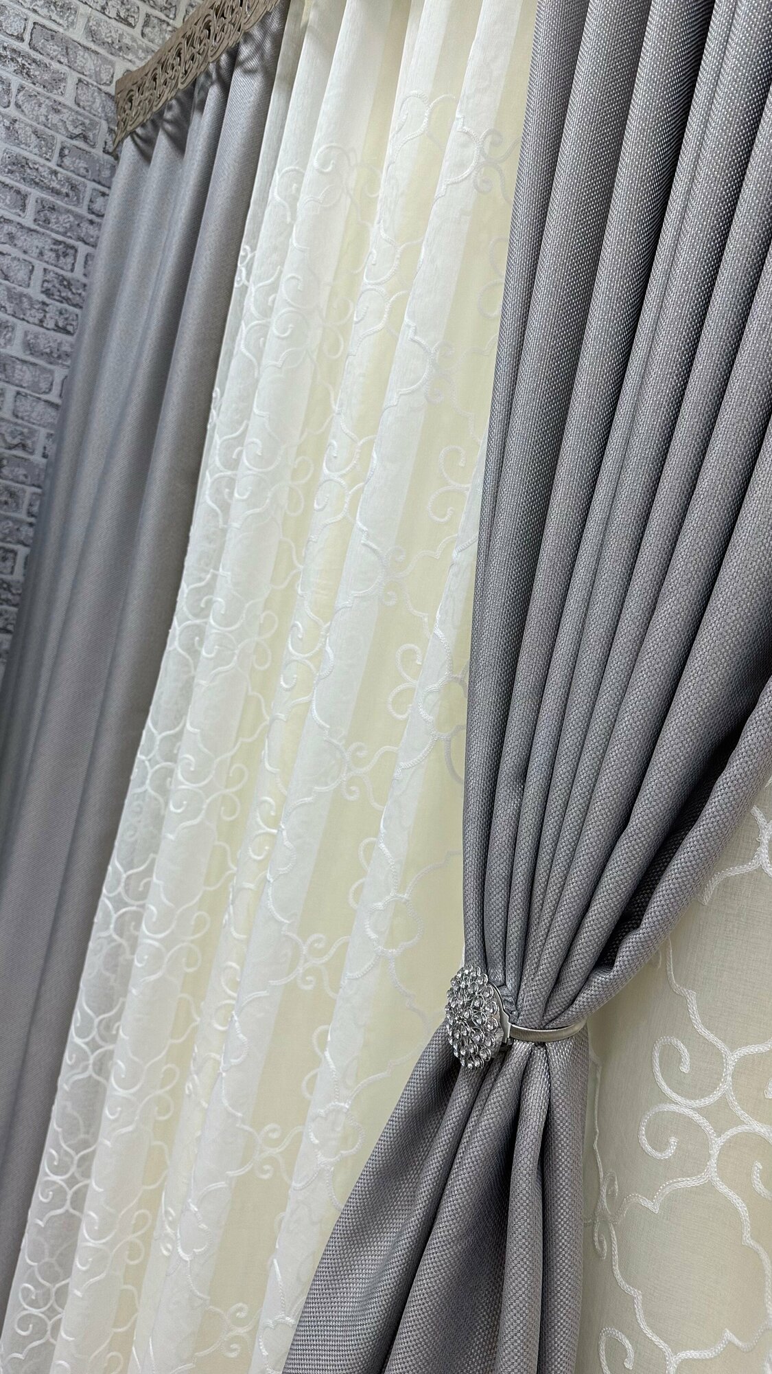 Портьеры фактурные серые, 3м , высота 2,7м