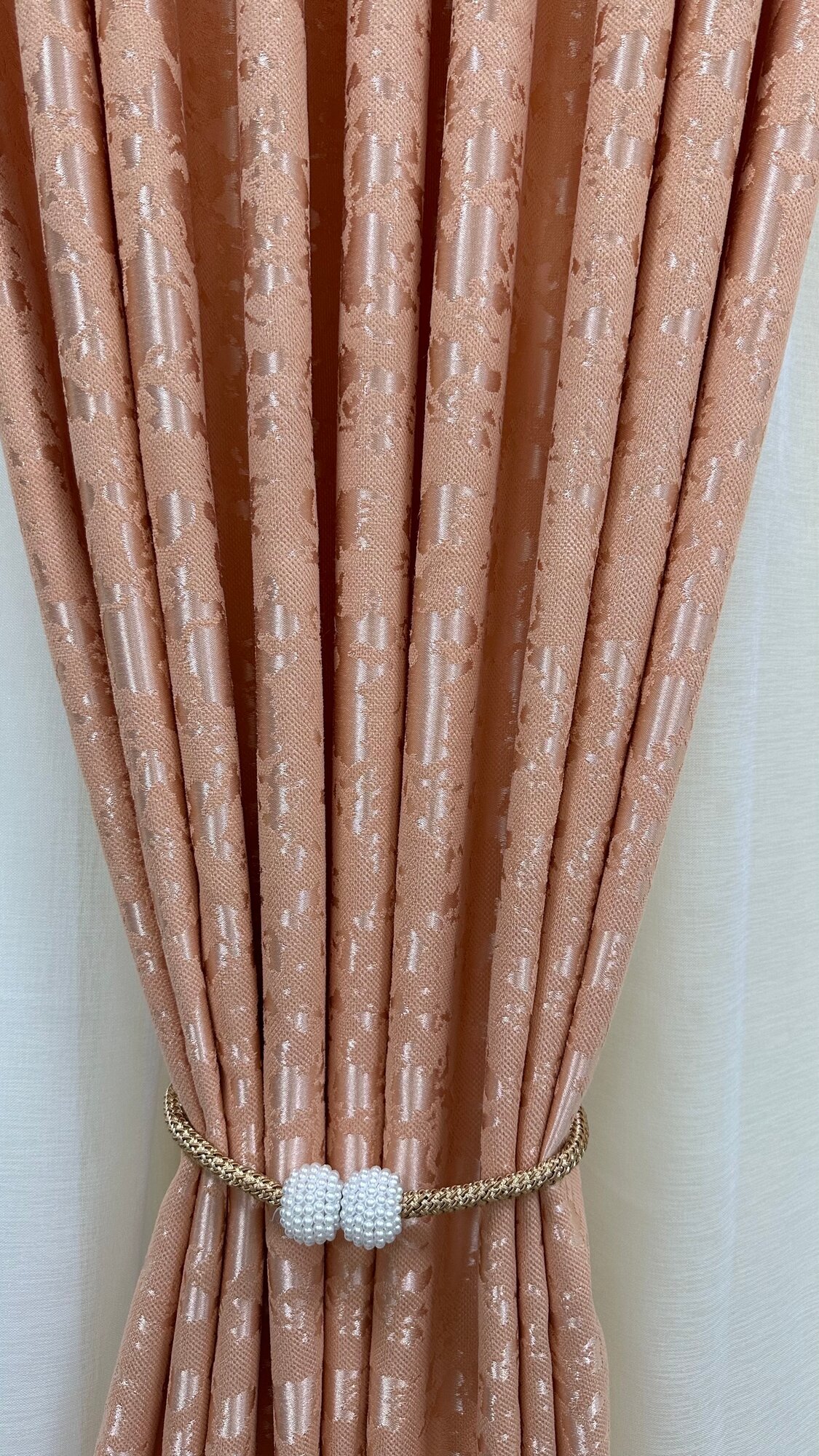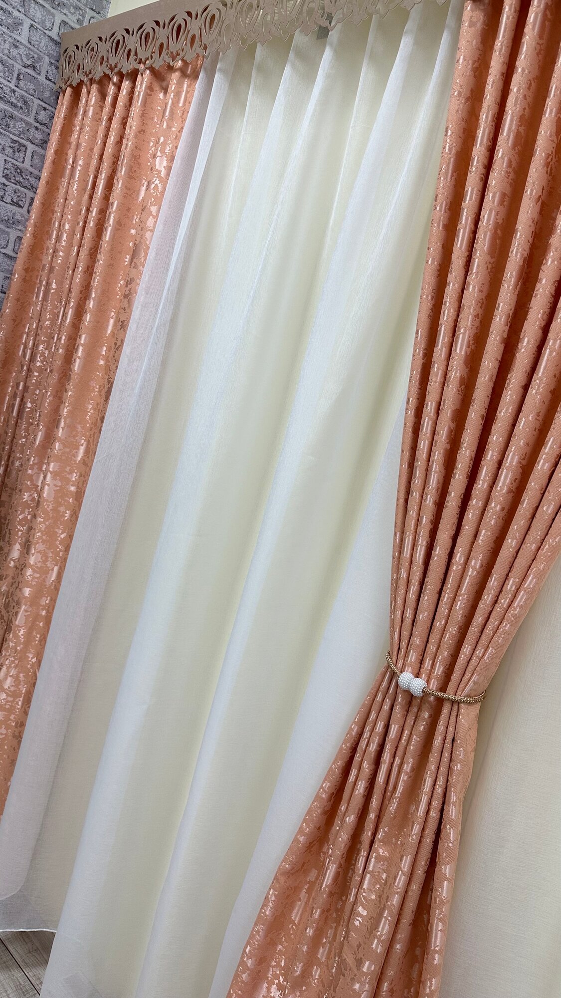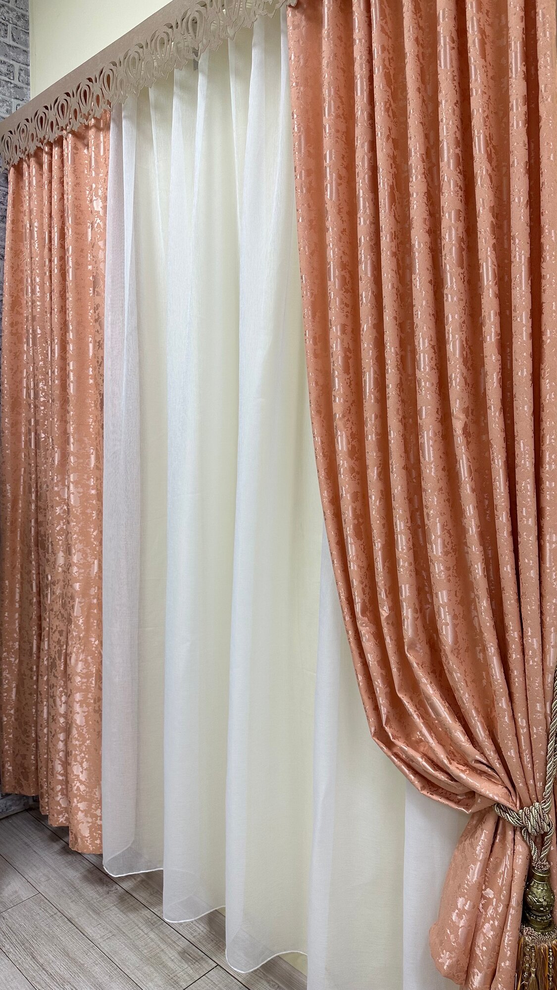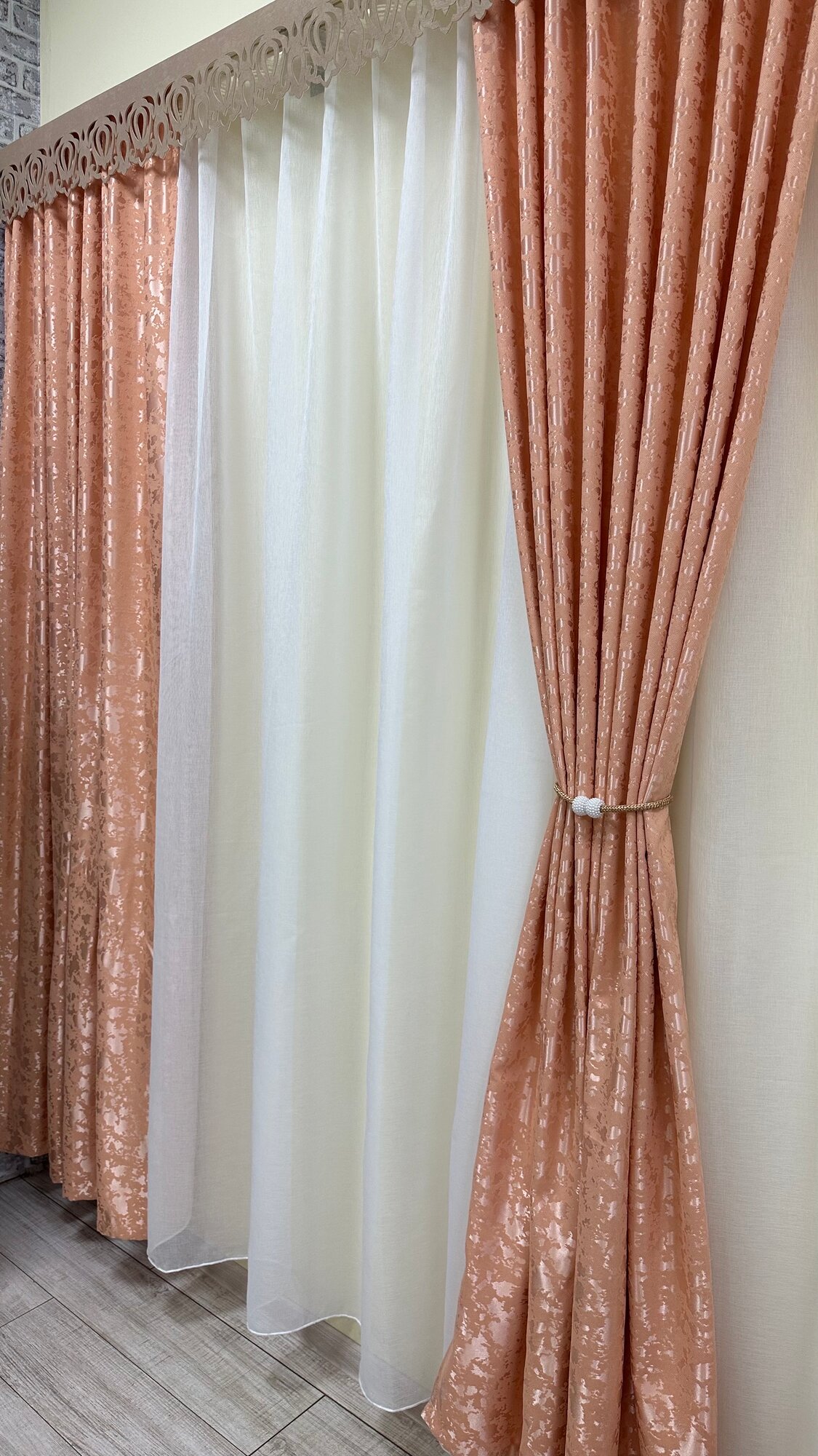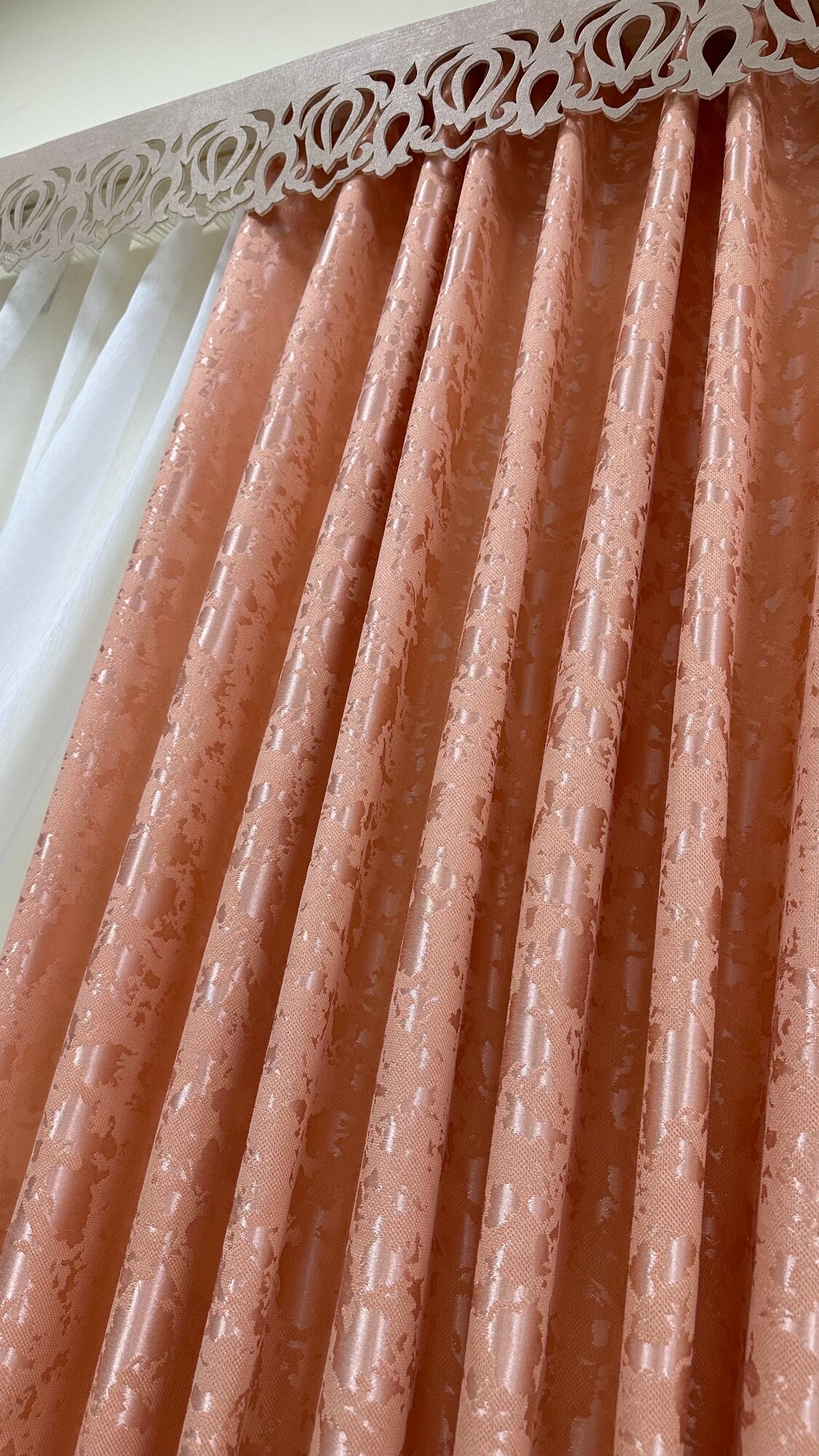 Купить Портьеры канвас мрамор персиковые, ширина 3м, высота 2,7м