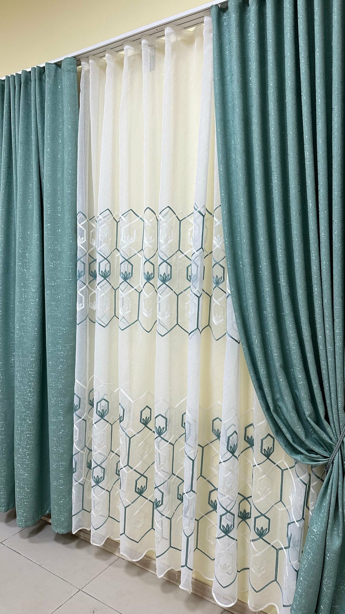 СохранитьПортьеры шенилл штрих ментоловые, ширина 4м, высота 2,7м интересное: